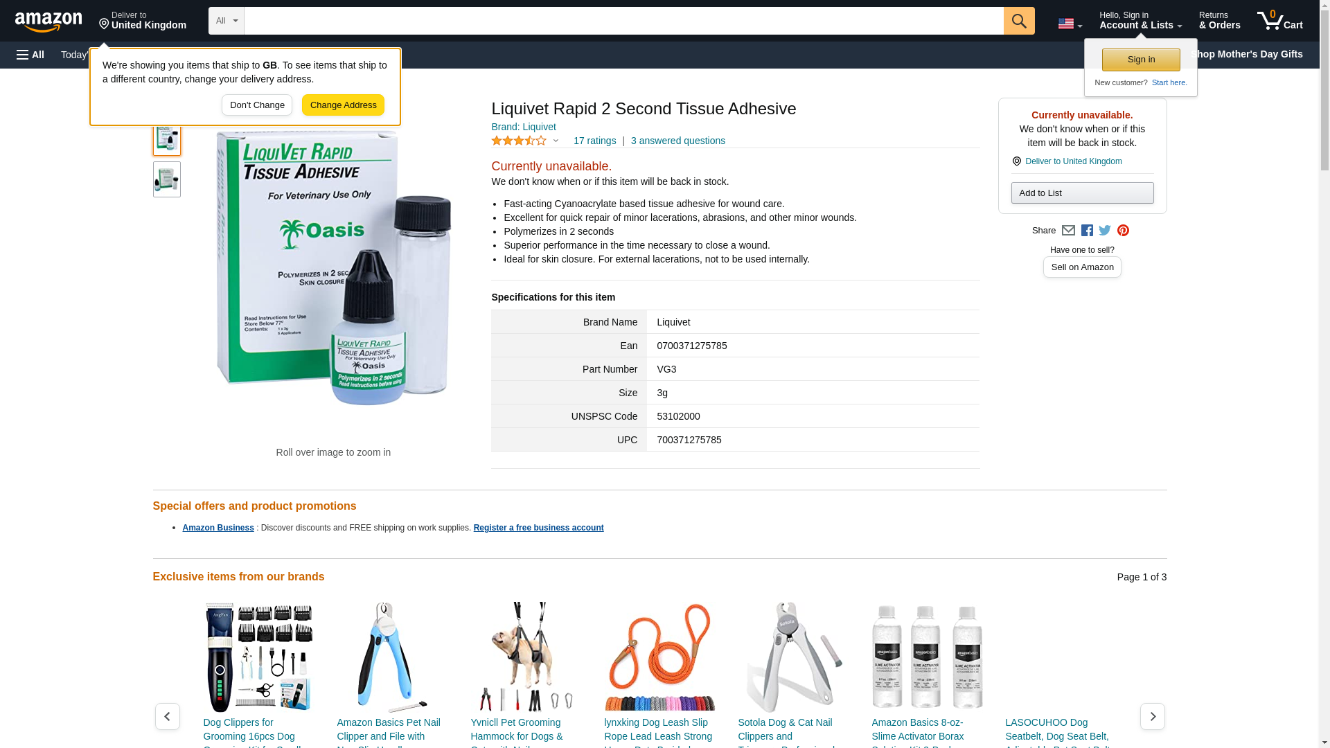 LiquiVet 2 Second Rapid Tissue Adhesive Glue, 3gr Bottle