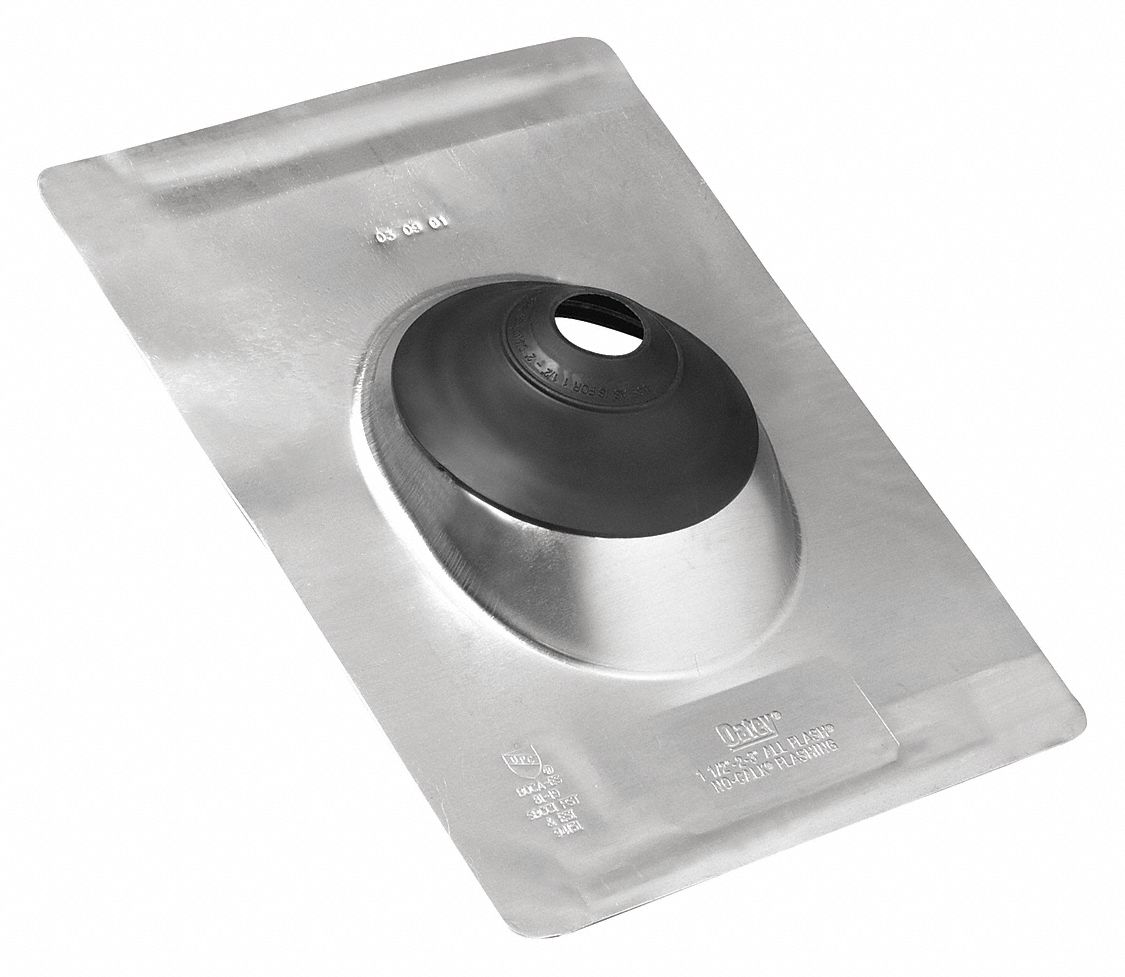 Oatey All-Flash No-Calk Roof Flashings can be used in commercial and residential applications where a watertight seal for roof penetrations around the plumbing vent pipe is required. The patented collar design allows for use on multiple pipe sizes. Flashing is installed to provide protection for possible weak points of sloped and flat roofs from becoming damaged. Take a look at the features for Oatey Roof Vent Flashing.; ; Brand Name: Oatey Width: 11 in. Length: 14-1/2 in. Material: Galvanized Steel Product Type: Roof Flashing Color: Silver Flashing Type: All-Flash Number in Package: 1 pk Thickness: 0.0148 in. drive Shape: Rectangle Fits: 1-1/4 inch to 3 inch Vent Pipe Height: 3 in. No-Calk: Yes