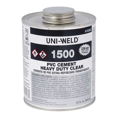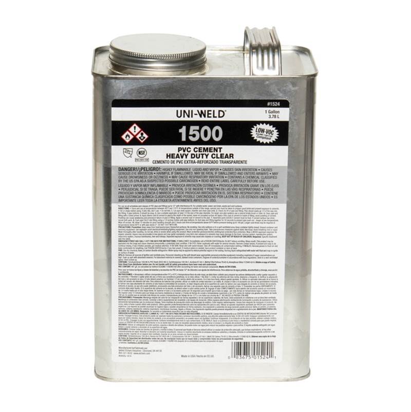 | Feature | Heavy duty clear cement for use on all schedules and classes of PVC pipe and fittings up to 12"" diameter with interference fit, up to 18"" for non-pressure. |