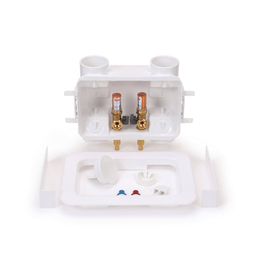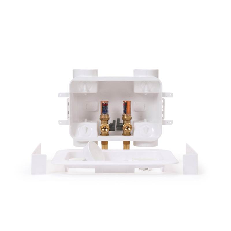 Oatey 38203 Assembled Washing Machine Outlet Box Copper Sweat 1/4" Turn with Water Hammer, 2" x 4"