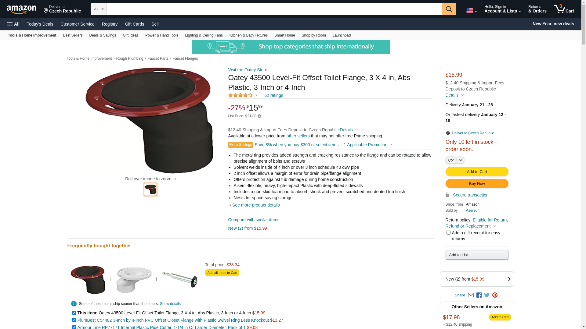 Oatey 43500 Level-Fit Offset Toilet Flange, 3 X 4 in, Abs Plastic, 3-Inch or 4-Inch