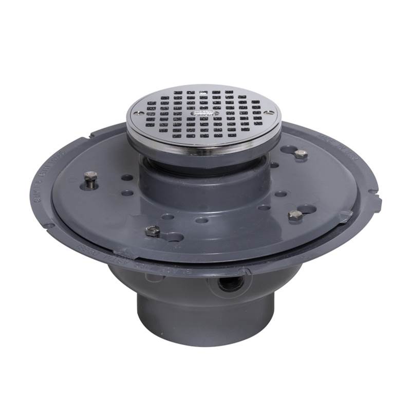 Oatey 72324 PVC Adjustable Commercial Drain with 5-Inch Cast CHR Grate and Round Top, 4-Inch