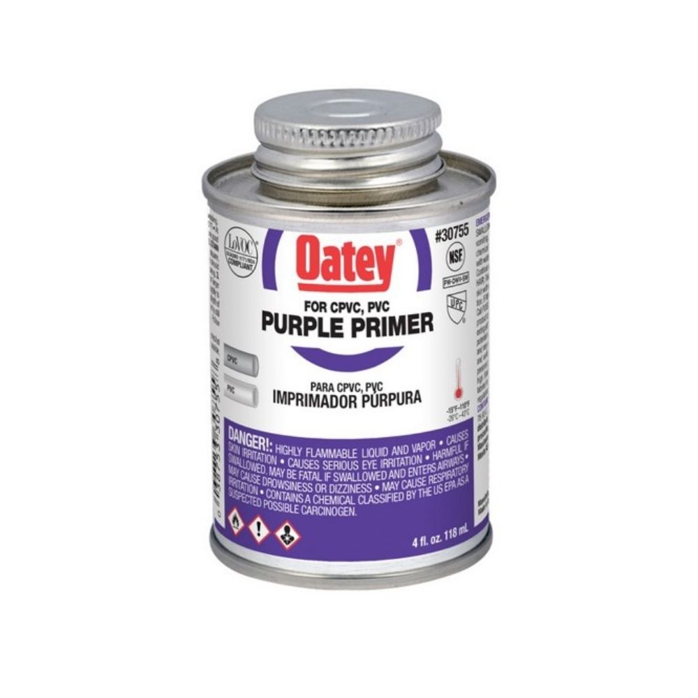 Oatey 4oz Purple Primer (30755). More details: Package Size: 4 oz. Product Type: Purple Primer Low VOC: Yes Color Fam...