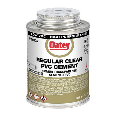 Oatey PVC regular bodied fast set clear cement is recommended for DWV, pressure pipe, potable water and electrical applications. This regular bodied, fast set cement can be used to solvent weld all schedules and classes of PVC pipe and fittings up to 4 in. for schedule 40 and up to 2 in. for Schedule 80 with interference fit. Oatey products have earned the trust of plumbing professionals for over 100 years.; ; Brand Name: Oatey Color: Clear Product Type: Cement Pipe Material or Type: PVC Container Size: 8 oz Maximum Temperature: 110 �F Maximum Pipe Diameter: 4 in. Minimum Temperature: 40 �F VOC Level: 425 g/L Applicator in Lid: Yes Maximum Use Temperature: 140 deg. F Set Speed: Fast Set Weight: 0.61 lb.