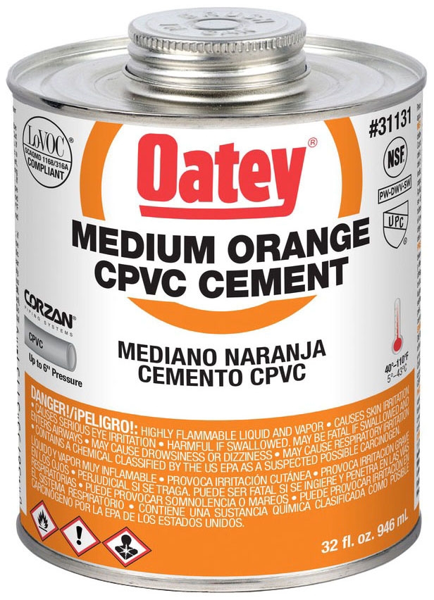 - Medium-Bodied Orange cement for use on all schedules and classes of CPVC pipe and fittings up to 6-Inch diameter with interference fit