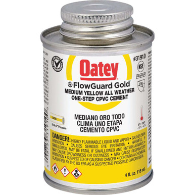 Oatey 31910 4 oz. CPVC All Weather Flowguard Gold 1-Step Yellow Cement