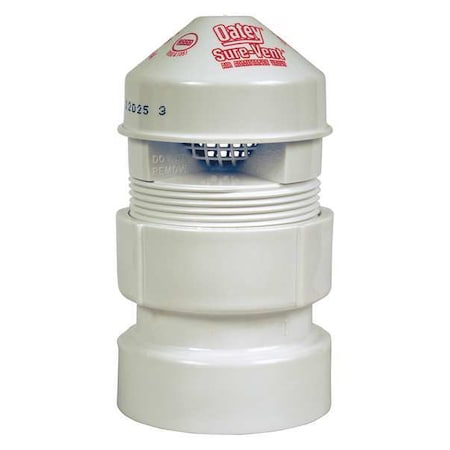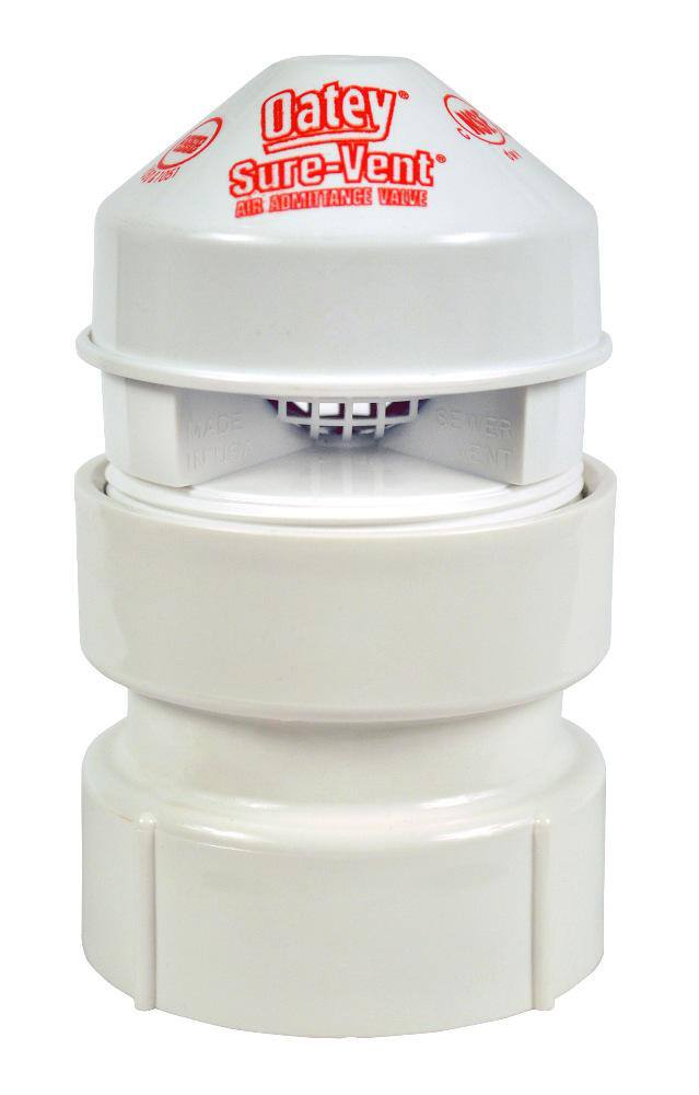 The OATEY Sure-Vent 1-1/2 in. x 2 in. PVC Air Admittance Valve features a 1-way valve that permits air to enter when negative pressures develop in the piping system. Closes by gravity to seal the vent terminal at zero differential pressure. Prevents sewer gases from escaping into a building.