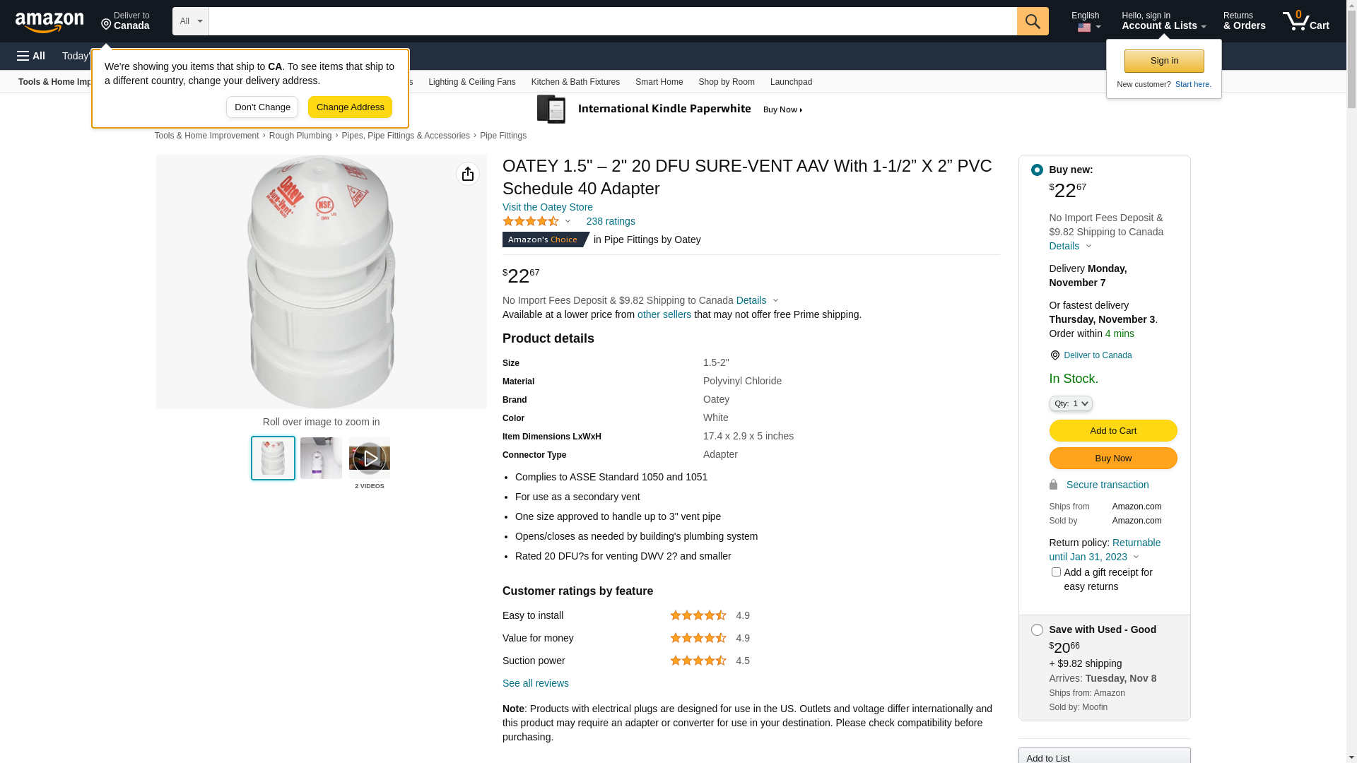 Safe Selling Air Inlet Valve Advanced Seal Technology with 1-1/2" to 2" PVC Adapter Solvent Welds to 1-1/2" and 2" Adapter and Threads Supplied on Iron Pipe Adapter 2-inch female, tested to meet DWV standard to NSF 14 ASSE 1050 and ASSE/ANSI 1051 A and B with quality control for plastic components and standard compliance, ensure Vent warranty HE