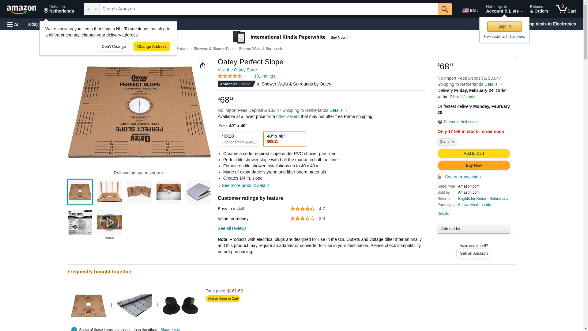 - For use on tile shower installations up to 40 x 40 in.