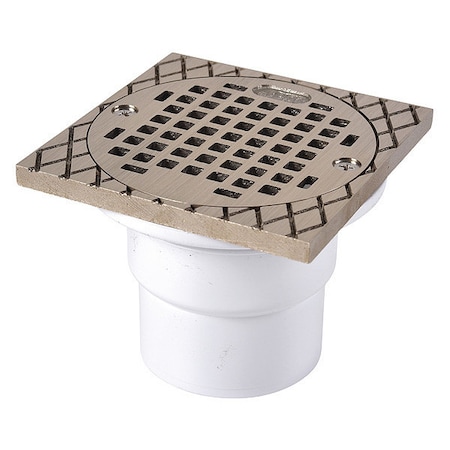 - Drain base engineered as hub for 2-Inch Sch 40 pipe or solvent welds inside 3-Inch Sch 40 pipe
