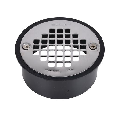 Oatey 43566 4 in. Round Snap-In Black ABS Shower Drain with 4 in. Removable Stainless Steel Strainer, 4"