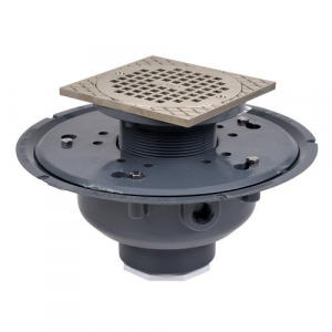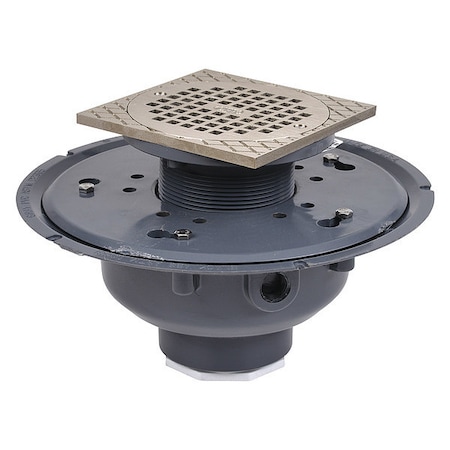Oatey 72172 2" PVC Adj. Commercial Drain w/ 6" NI Grate & Square Ring, Strainer Material Nickel