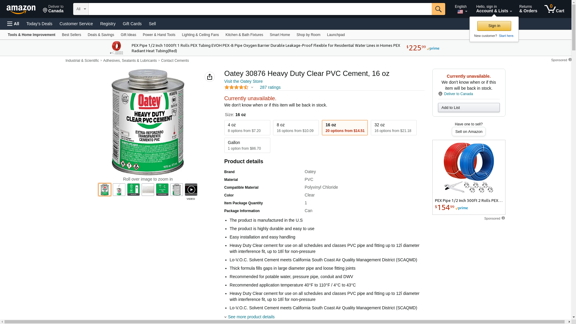 | Feature | Price For: Each Standards: ASTM D2564, (SCAQMD) 1168/316A, BAAQMD Method 40 Item: PVC Cement Color: Clear Type: Clear, Heavy Bodied Size (Oz.): 16 Country of Origin (subject to change): United States |