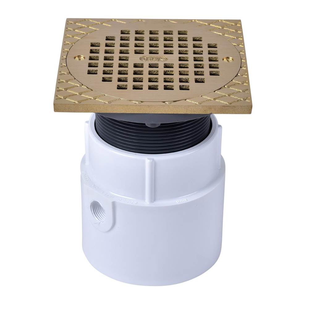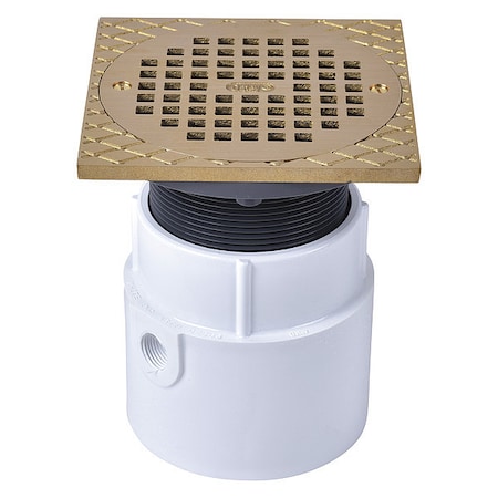Oatey 72148 PVC Pipe Base General Purpose Drain with 6-Inch BR Grate and Square Ring, 4-Inch