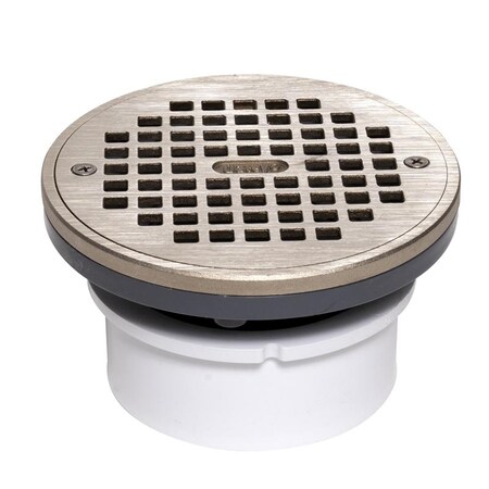 Oatey 72169 PVC Hub Base General Purpose Drain with 6-Inch NI Grate and Round Ring, 4-Inch
