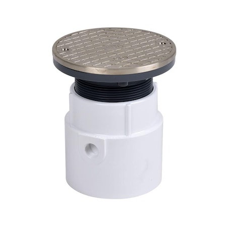 Oatey 74168 PVC Pipe Base General Purpose Cleanout with 6-Inch NI Cover and Round Ring, 4-Inch