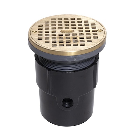 3" or 4" Pipe Dia. ABS, Brass Adjustable Drain, Type: Round with ring