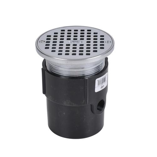 - Drains offered in three base sizes: 4-Inch Hub Drain Base, 4-Inch Pipe Drain Base, 3-Inch or 4-Inch Pipe Drain Base (fits over 3-Inch pipe and inside 4-Inch pipe)