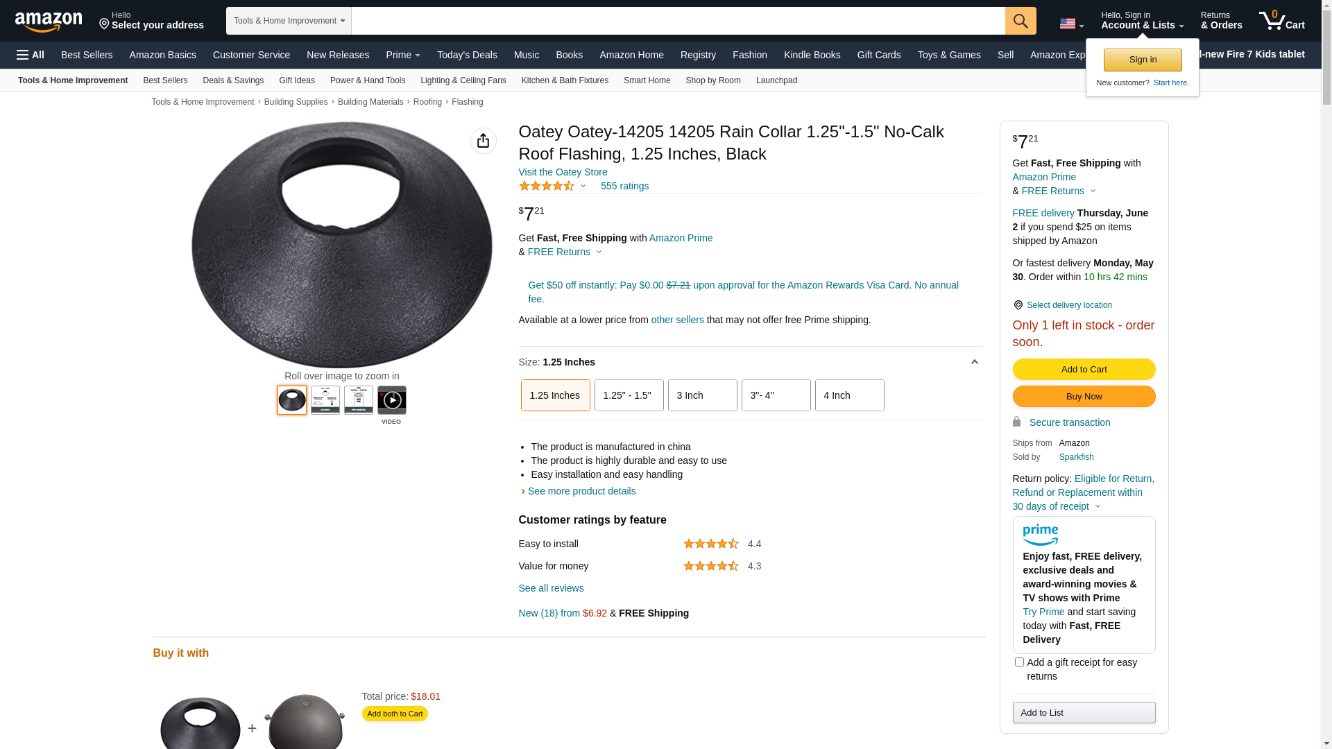 Oatey Roof flashing 14205 1.25" ? 1.5" Collar ? Carded, For No-Calk? Roof Flashings can be used as a secondary seal for commercial and residential applications