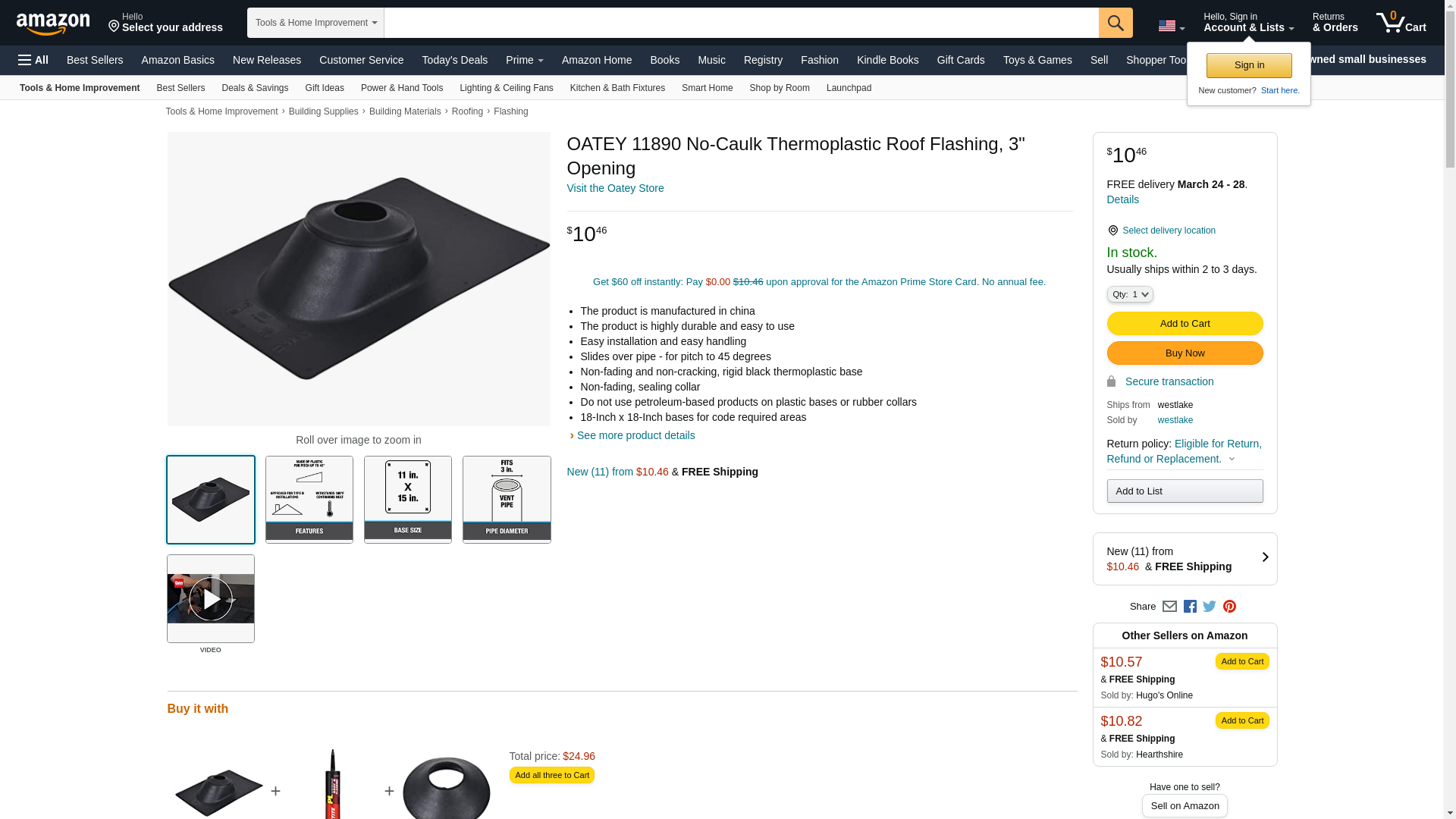 Oatey 11890 No-Caulk Thermoplastic Roof Flashing, 3" Opening, 3" pipe diameter, No Color