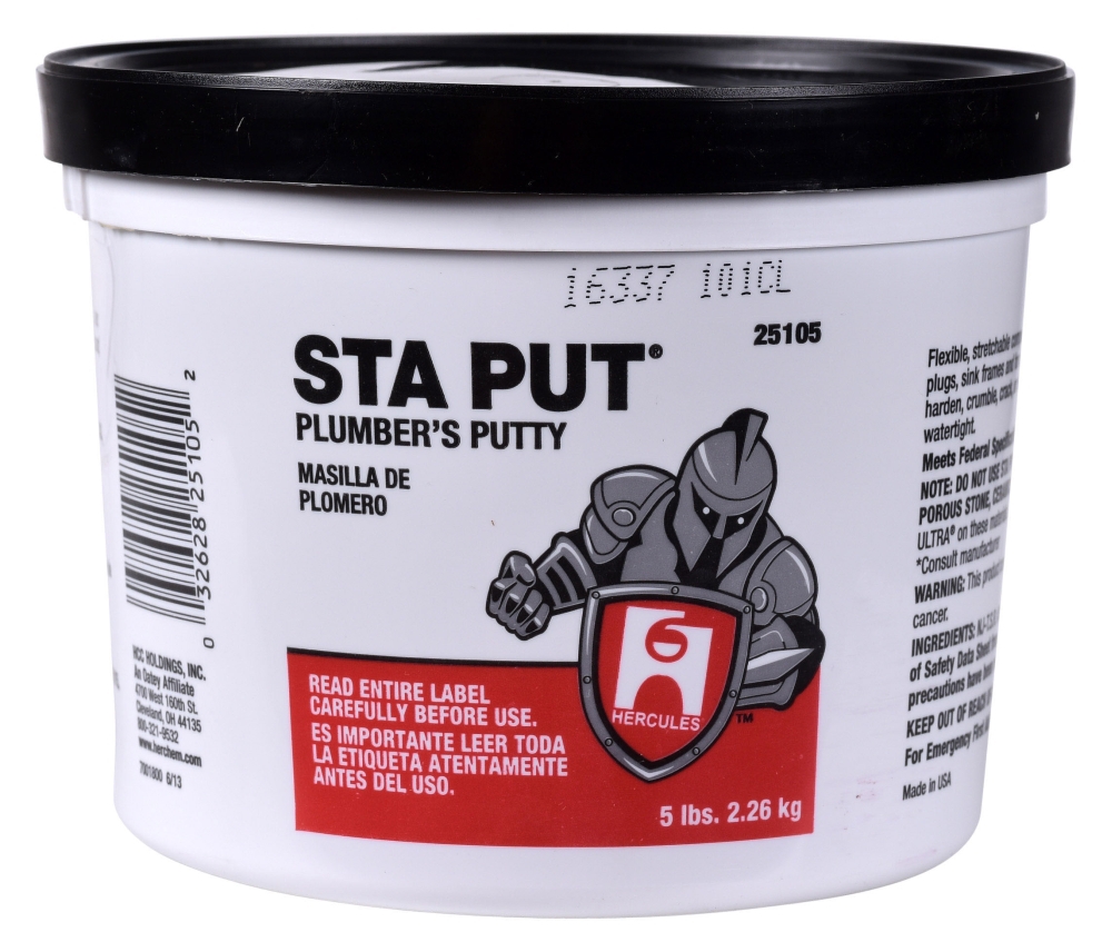 Plumber Putty; Container Type Pail; Container Capacity 5 Pound; Color Off-White; Features Flexible, Stretchable, Non-Hardening, Non-Crumble, Non-Crack or Non-Shrink, Non-Sticking to Hands; Application Bowl, Fixture, Faucet, Basin Cock, Strainer, Plug, Sink Frame, Sealing, Caulking; Applicable Standard TT-P-1536, ISO 9001; Physical State Solid; Odor Slight; Flash Point 212 Deg F; Relative Density 1.8; Viscosity 5000000 CP; VOC 6 Gram per Liter