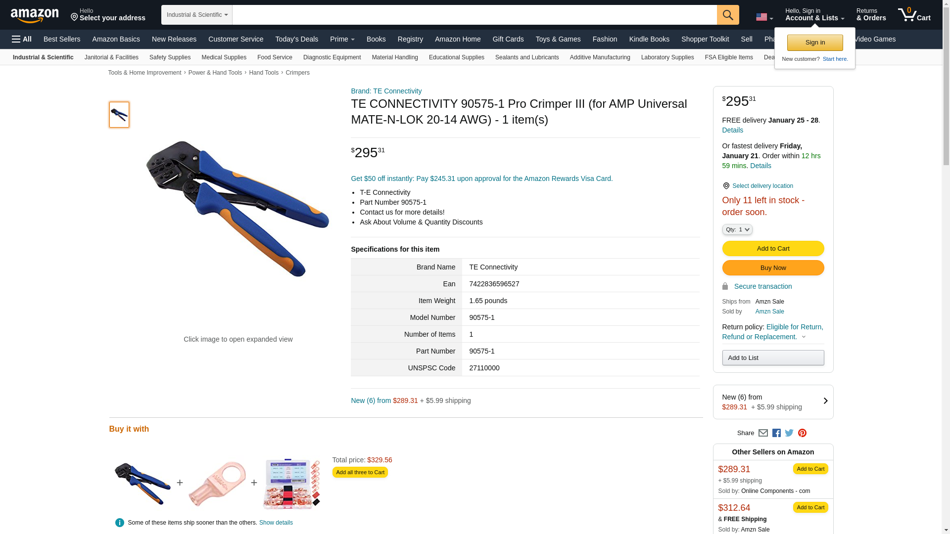 | Feature | TE CONNECTIVITY / AMP 90575-1 PRO-CRIMPER III HAND CRIMPING TOOL ASSEMBLY |