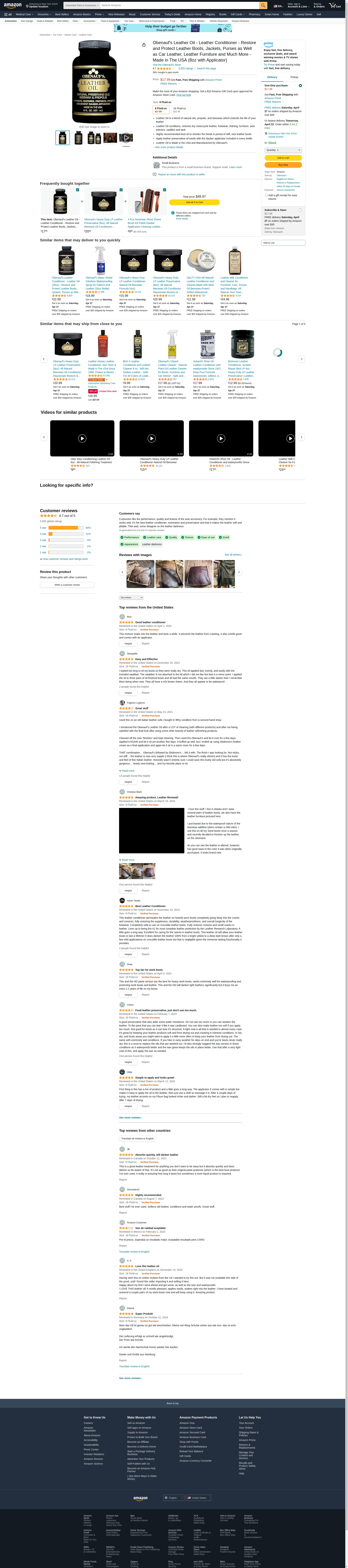 Obenauf's Leather Oil - Leather Conditioner - Restore and Protect Leather Boots, Jackets, Purses as Well as Car Leather, Leather Furniture and Much More - Made in The USA (8oz with Applicator)