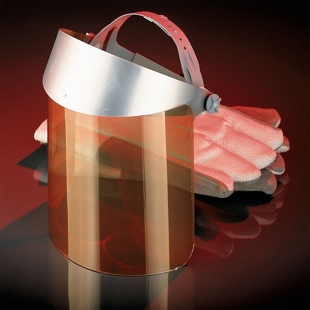 | Feature | <b>Price For:</b> Each <b>Visor Thickness</b>: 0.105" <b>Material</b>: polycarbonate <b>Visor Width</b>: 14" <b>Visor Height</b>: 8" <b>Dielectric Protection</b>: No <b>Standards</b>: ANSI Z87.1 <b>Item</b>: Faceshield Visor <b>Color</b>: Gold <b>Country of Origin (subject to change)</b>: United States |