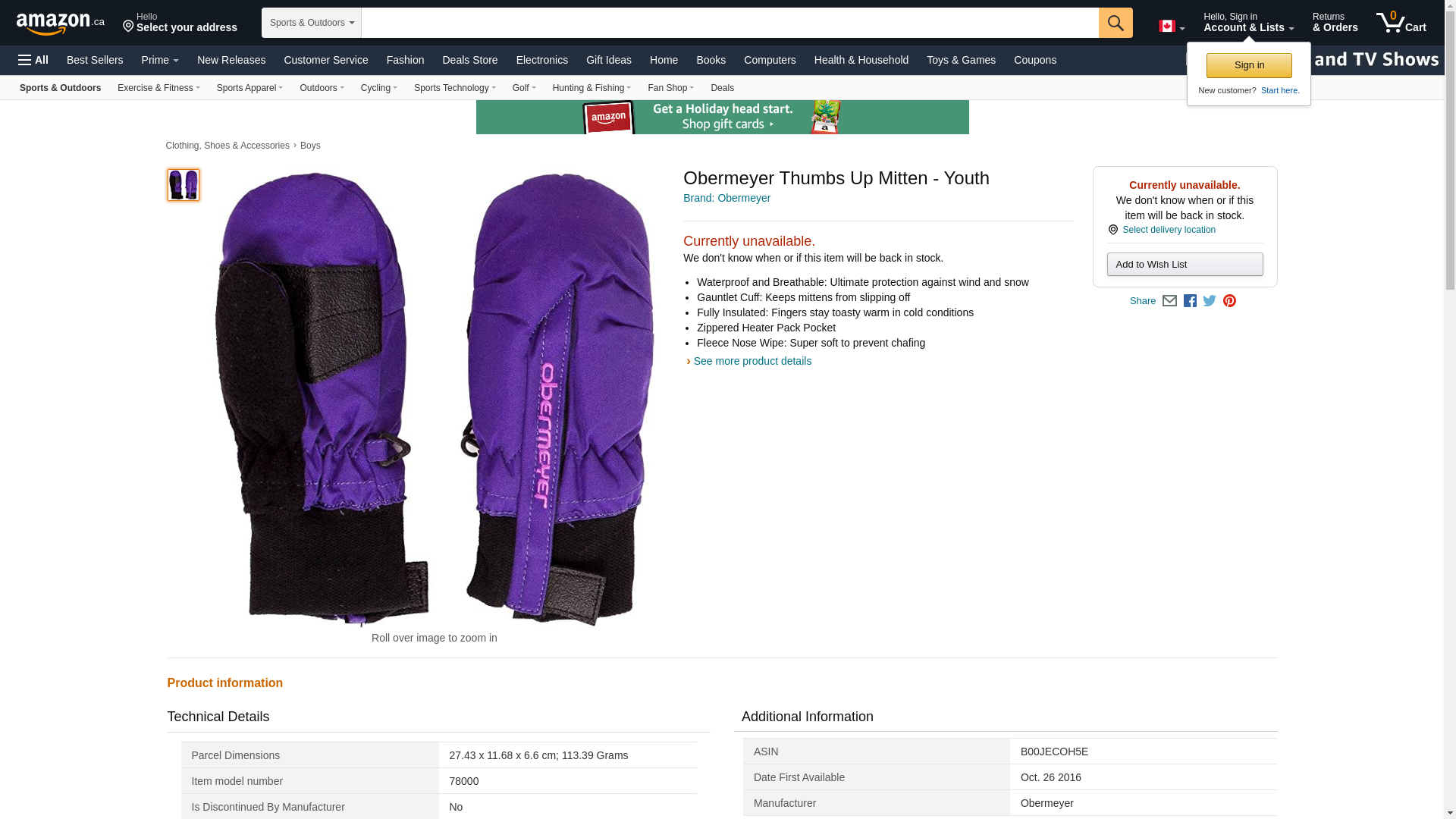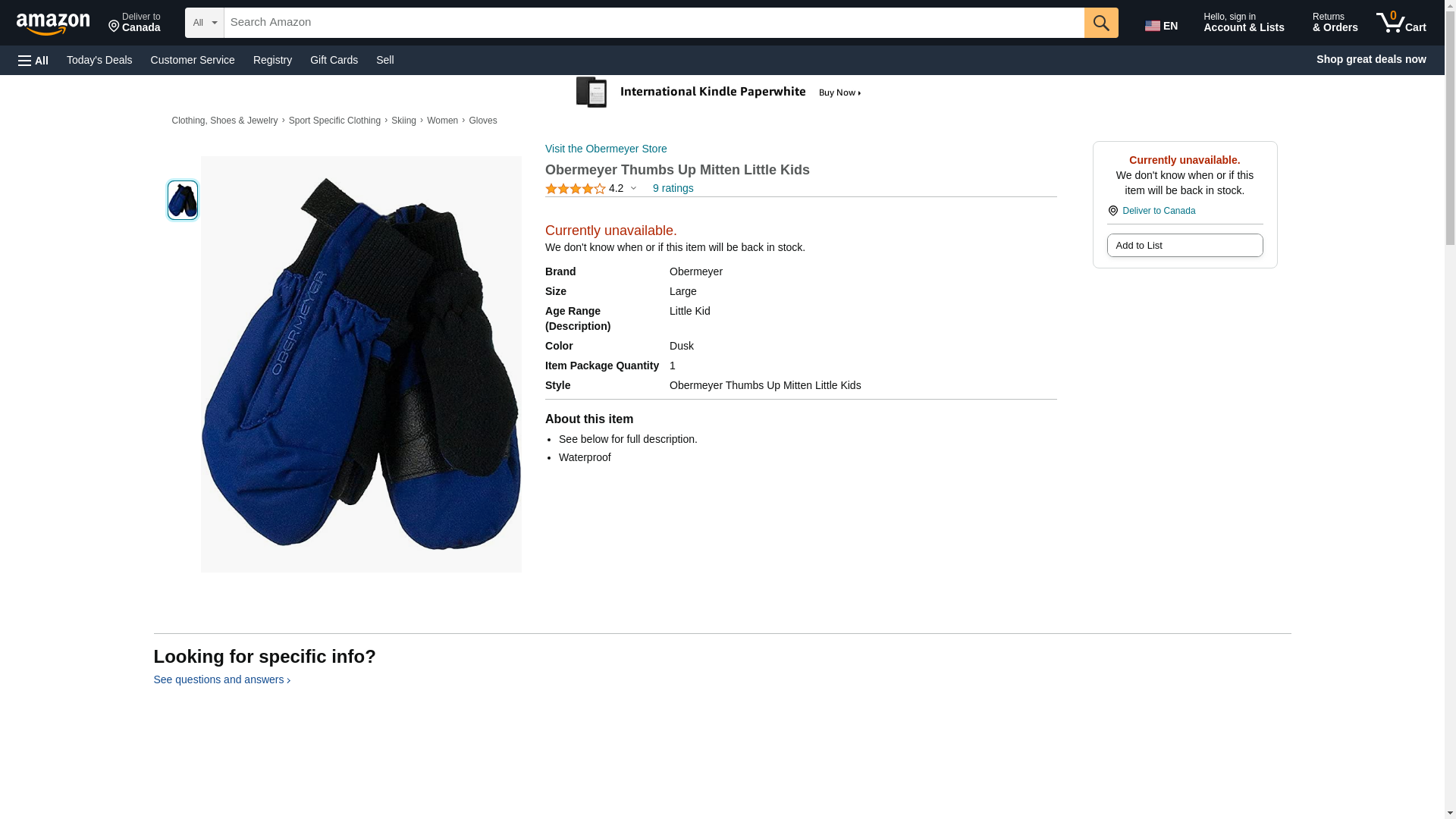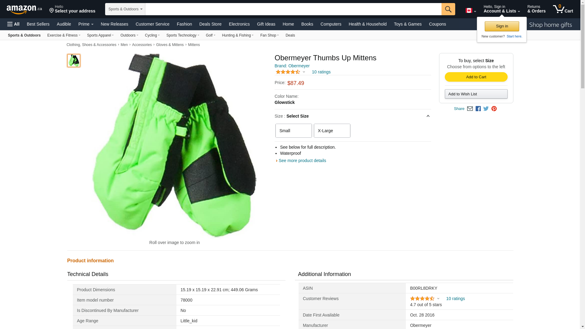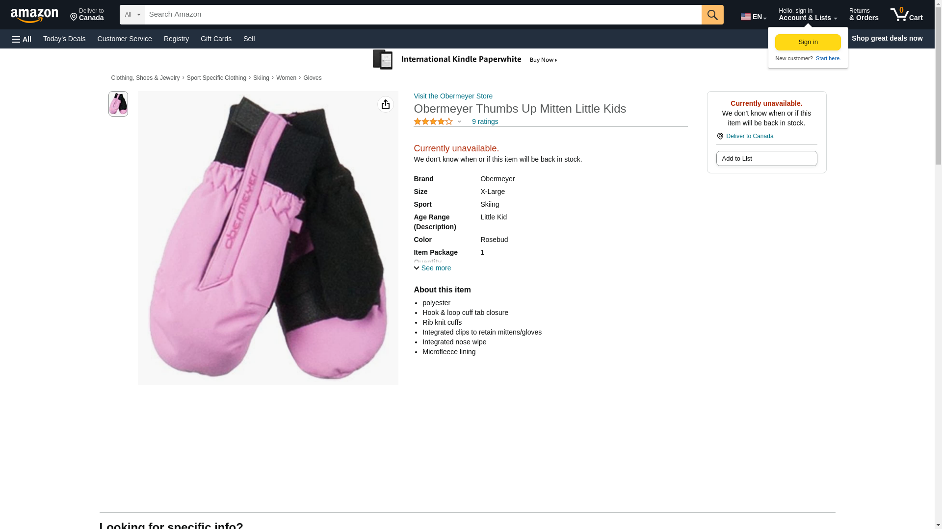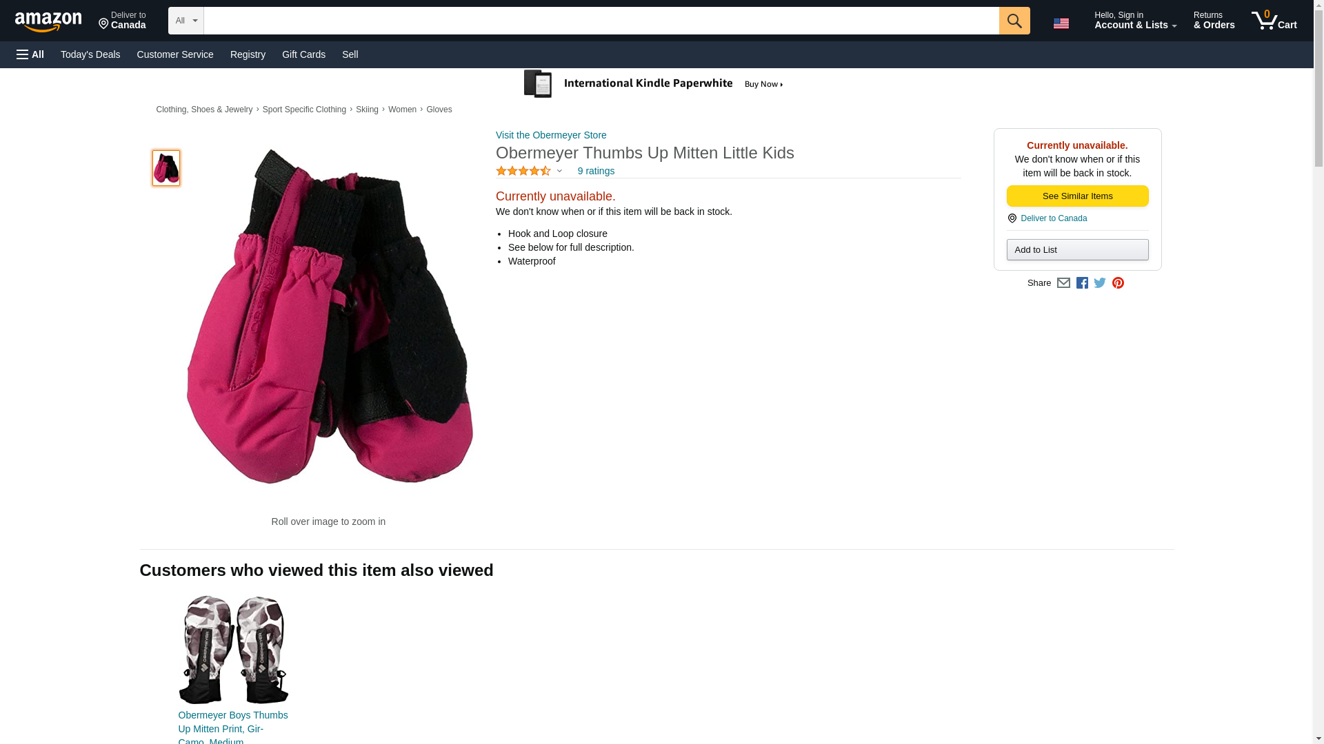 Obermeyer?s Thumbs Up Mitten is a warm waterproof option for skiing and snow days It protects with a waterproof breathable fabric and includes 100g Permaloft insulation for warmth A large Velcro closure opens wide making it easy to get little hands in and out A soft microfleece lining makes for comfortable all day wear and the integrated nose wipe is sure to come in handy After a long day your little one is sure to give two warm dry thumbs up 100pct polyester HydroBlock exterior fabric Waterproof and breathable to keep hands dry 100g Permaloft insulation packs in warmth DuraGuard DWR provides extra water resistance Reinforced palm and thumb for durability Built in clips let you attach mittens to prevent losing one Nose wipe section feels soft against skin Large Velcro opening for easy on/off