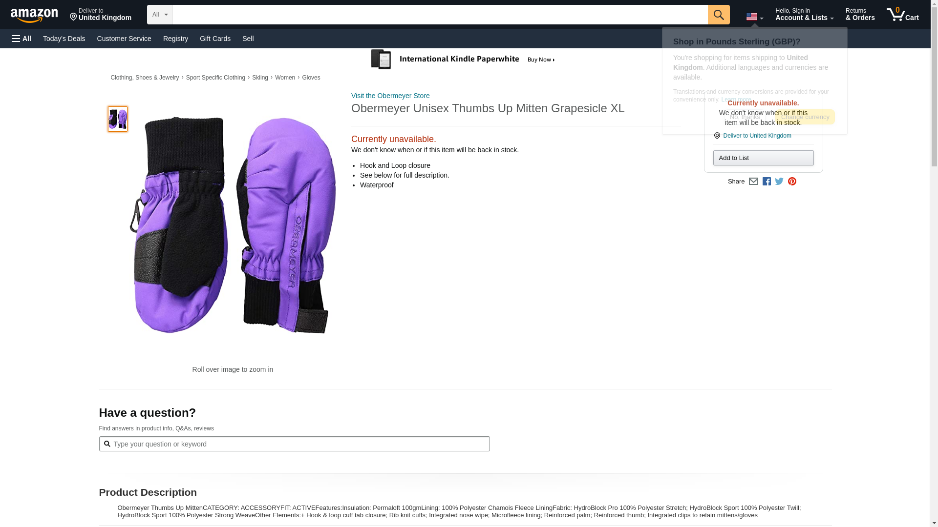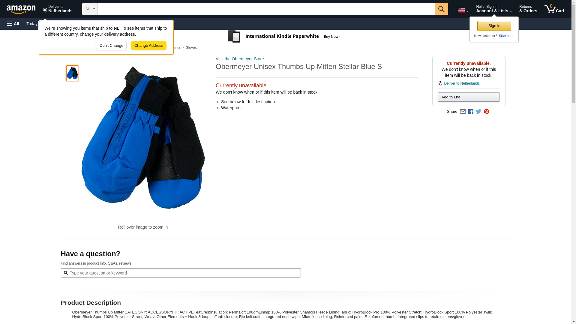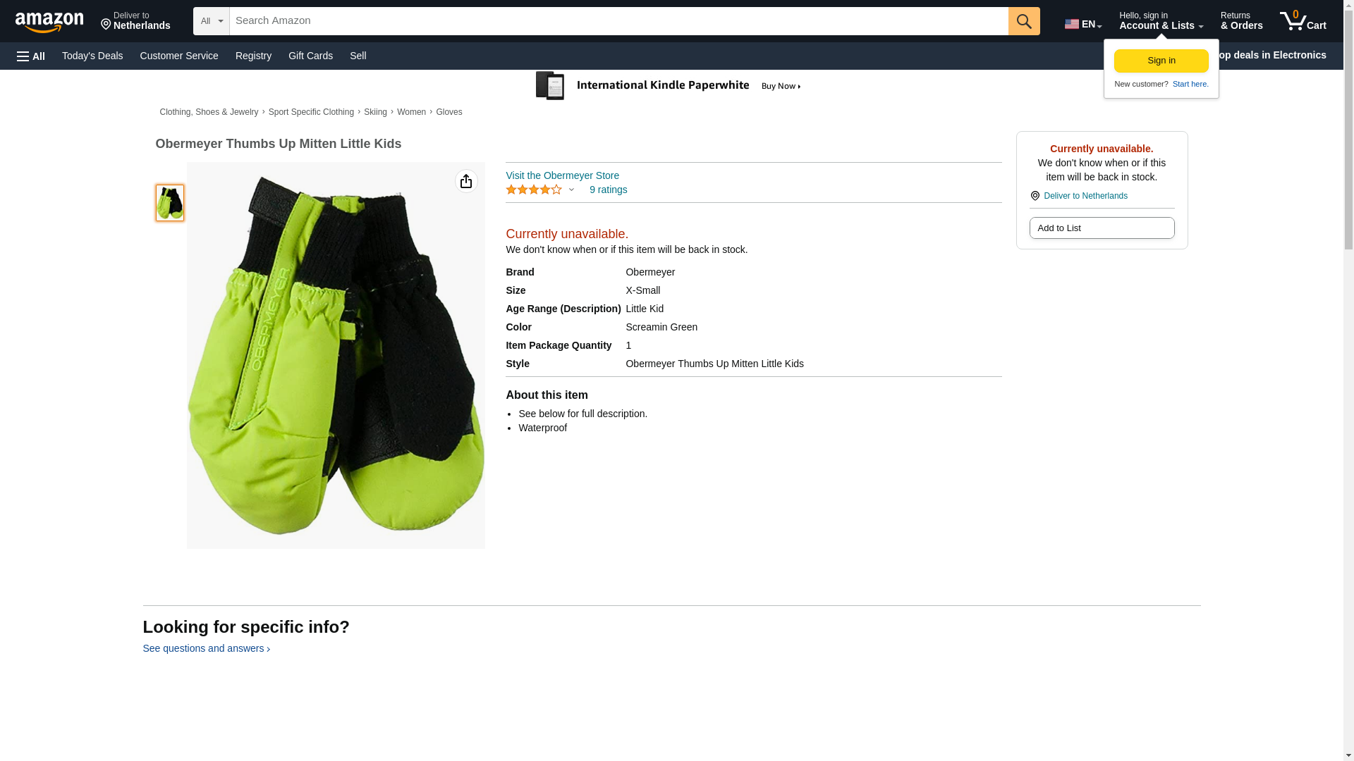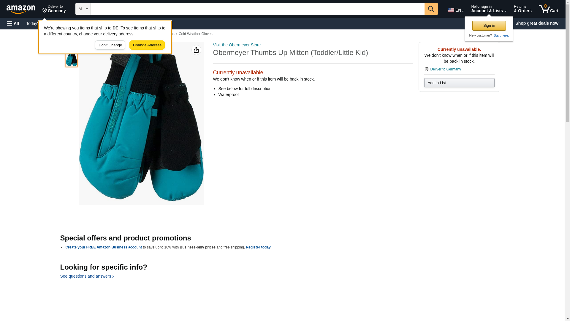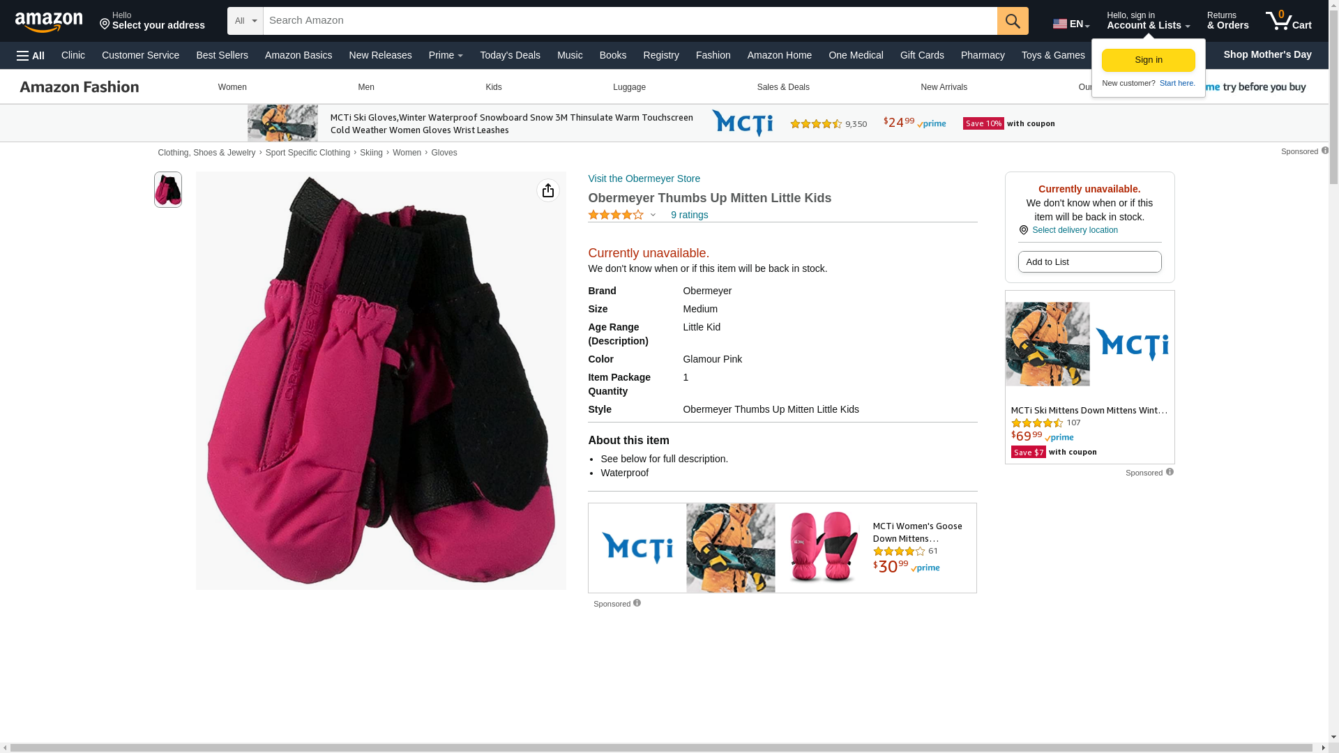 Obermeyer?s Thumbs Up Mitten is a warm waterproof option for skiing and snow days It protects with a waterproof breathable fabric and includes 100g Permaloft insulation for warmth A large Velcro closure opens wide making it easy to get little hands in and out A soft microfleece lining makes for comfortable all day wear and the integrated nose wipe is sure to come in handy After a long day your little one is sure to give two warm dry thumbs up 100pct polyester HydroBlock exterior fabric Waterproof and breathable to keep hands dry 100g Permaloft insulation packs in warmth DuraGuard DWR provides extra water resistance Reinforced palm and thumb for durability Built in clips let you attach mittens to prevent losing one Nose wipe section feels soft against skin Large Velcro opening for easy on/off