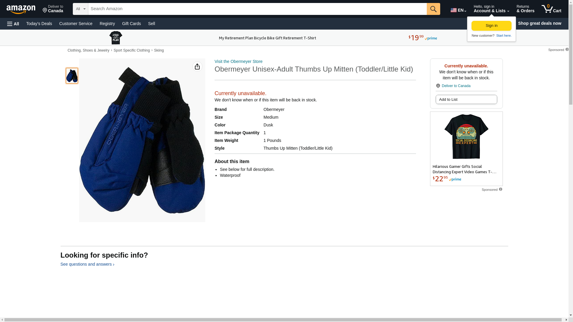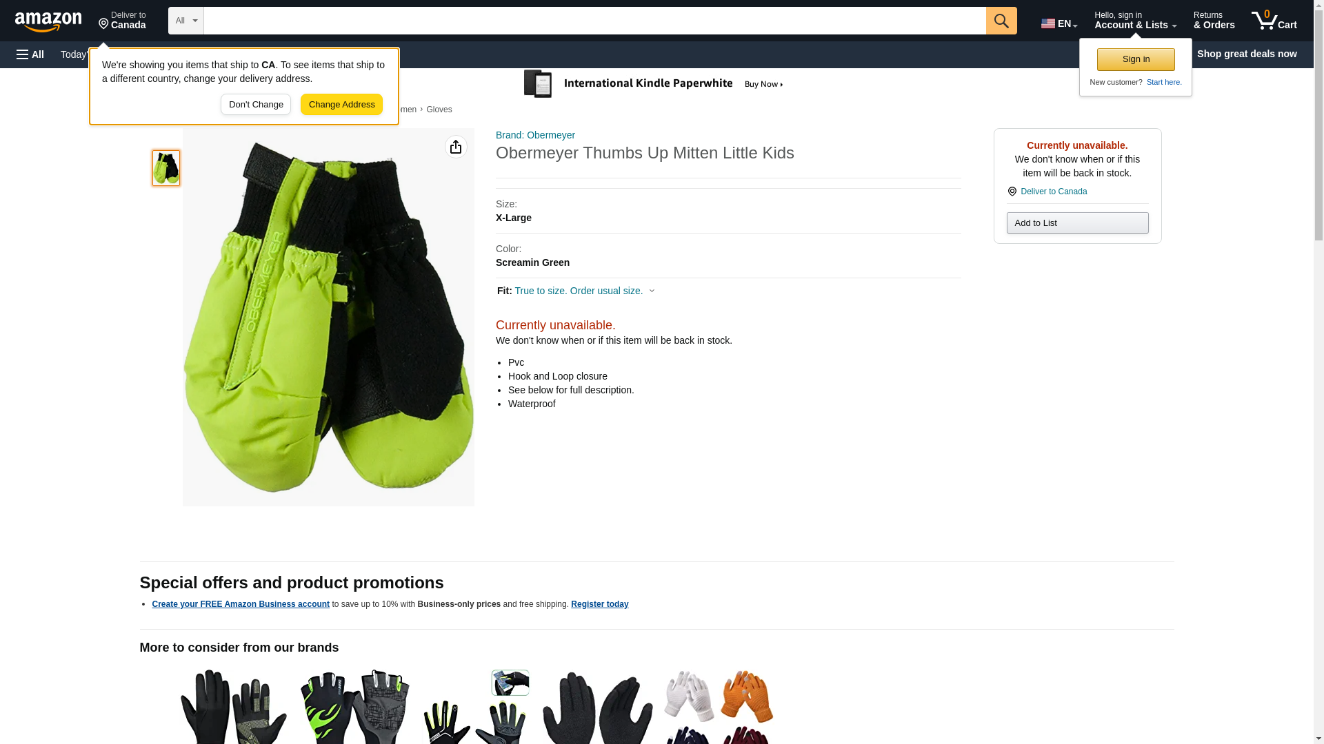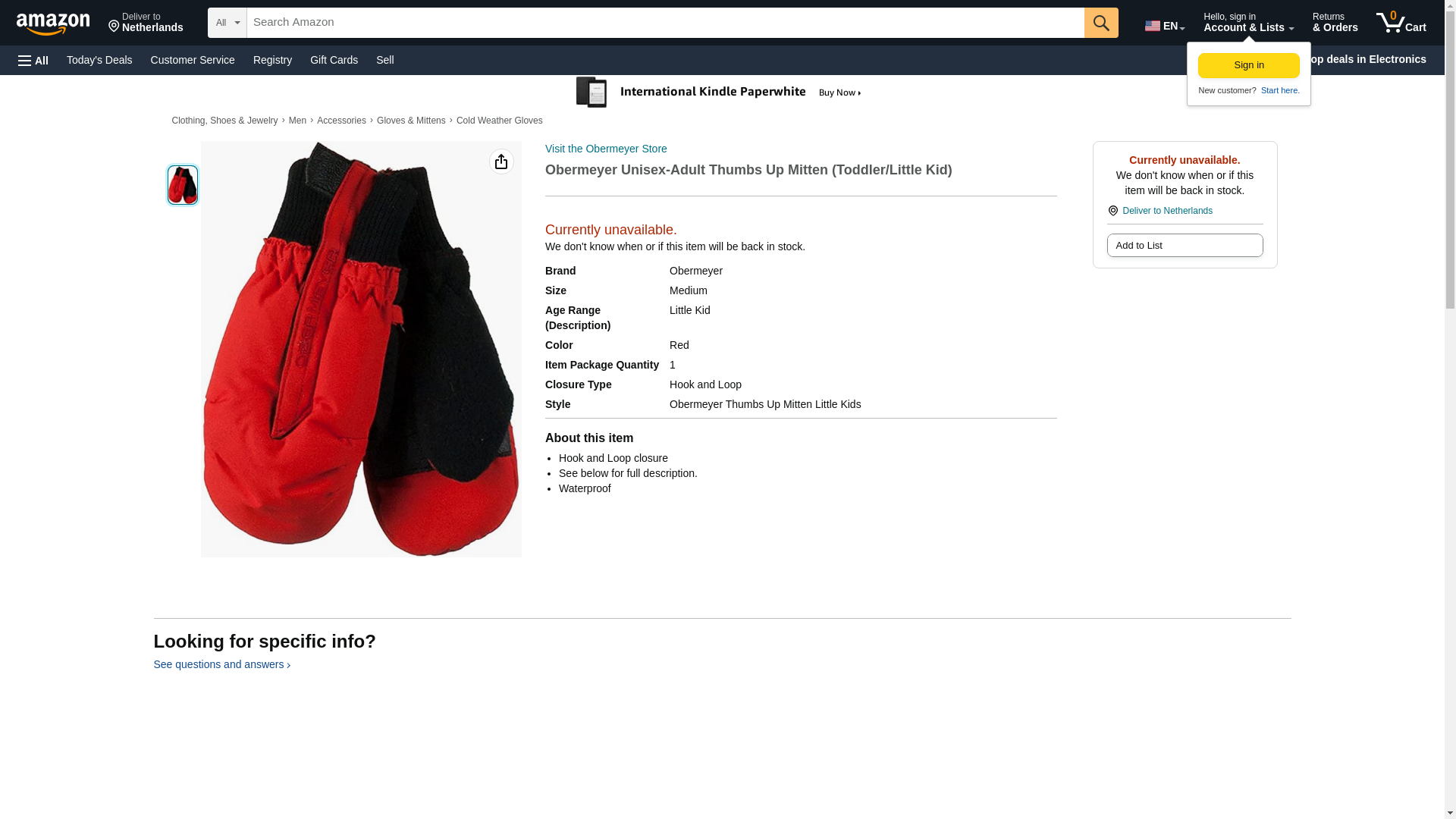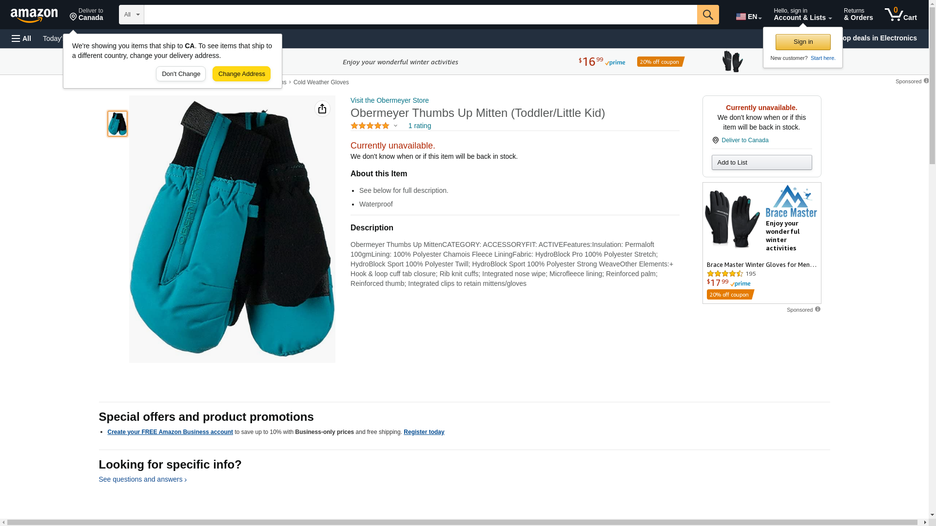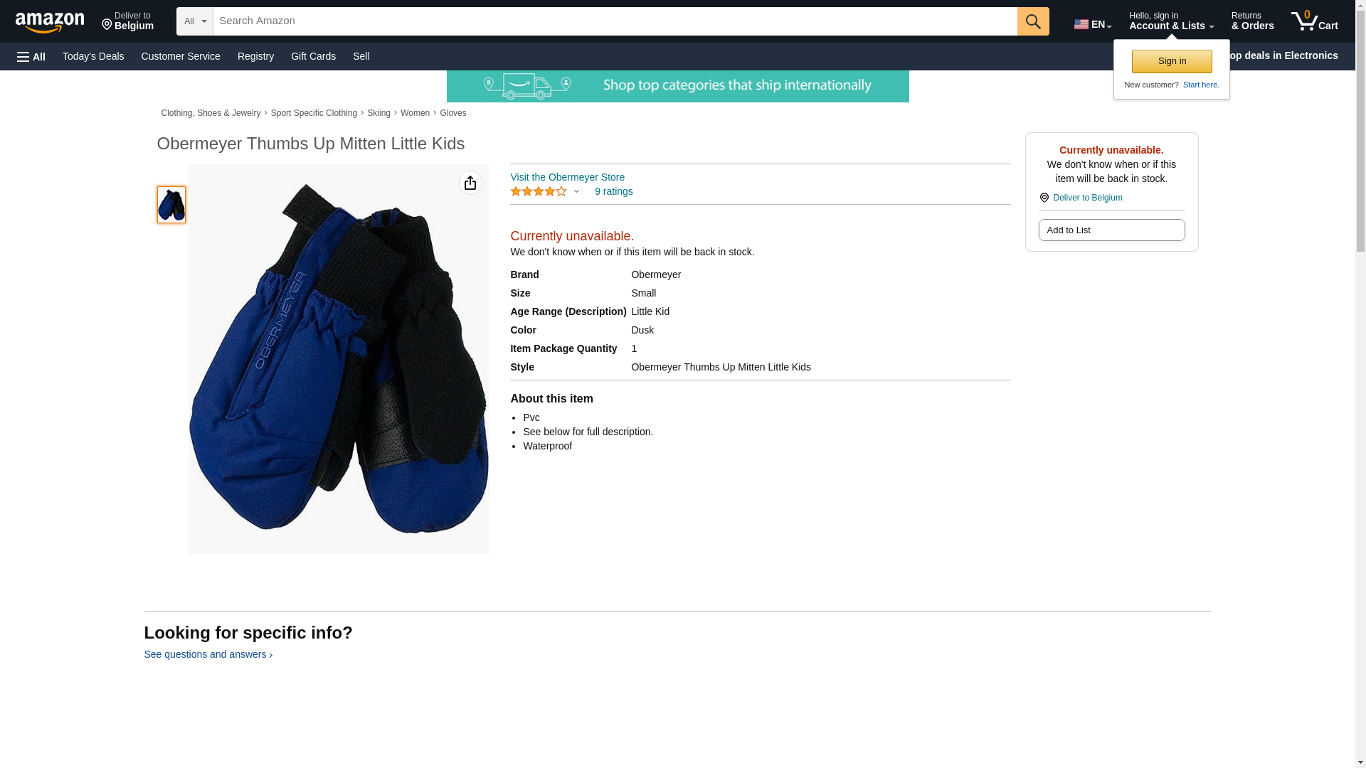 Obermeyer?s Thumbs Up Mitten is a warm waterproof option for skiing and snow days It protects with a waterproof breathable fabric and includes 100g Permaloft insulation for warmth A large Velcro closure opens wide making it easy to get little hands in and out A soft microfleece lining makes for comfortable all day wear and the integrated nose wipe is sure to come in handy After a long day your little one is sure to give two warm dry thumbs up 100pct polyester HydroBlock exterior fabric Waterproof and breathable to keep hands dry 100g Permaloft insulation packs in warmth DuraGuard DWR provides extra water resistance Reinforced palm and thumb for durability Built in clips let you attach mittens to prevent losing one Nose wipe section feels soft against skin Large Velcro opening for easy on/off