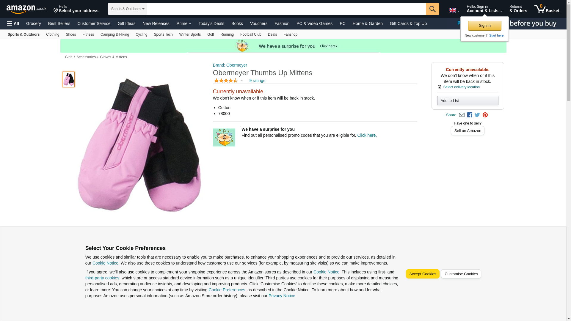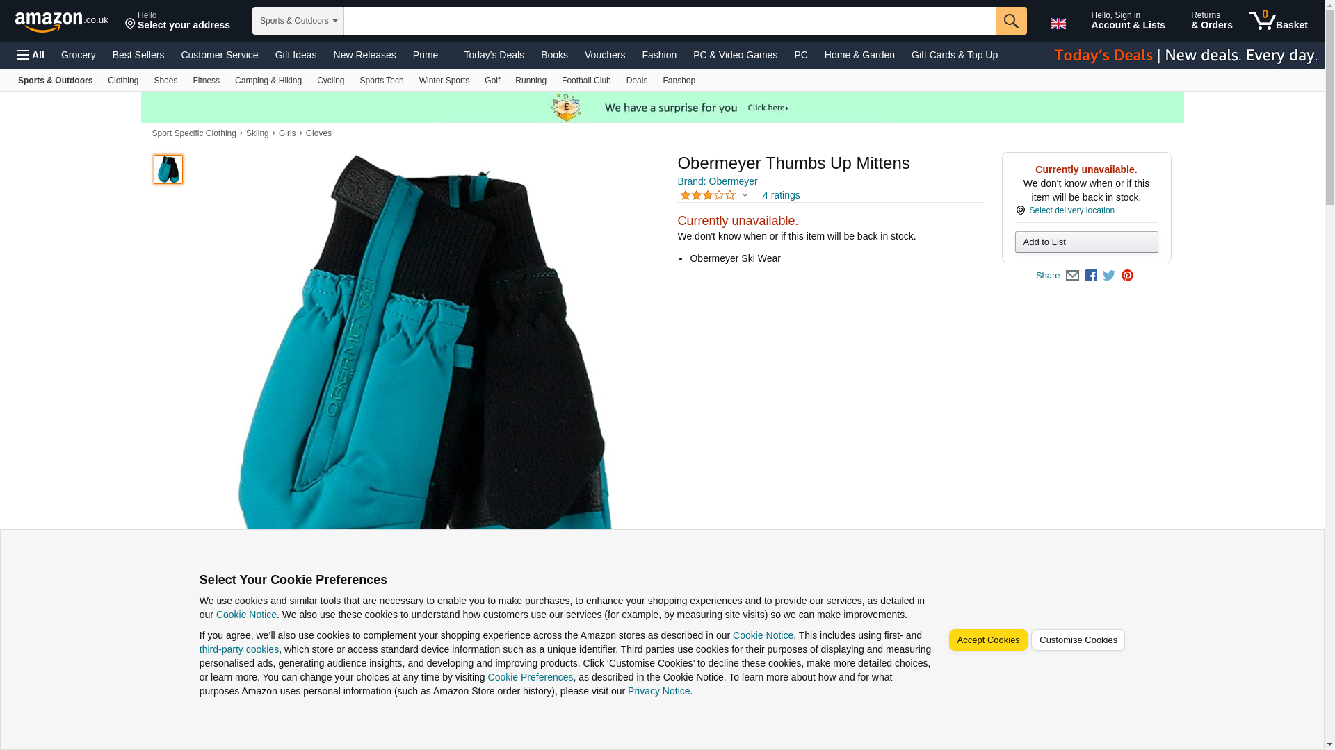 Obermeyer Girls' Thumbs Up MittenSTYLE # 78000 DESCRIPTION: Description FEATURES:FabricCoating: 100% Polyester Micro Twill with HydroBlock waterproof breathable lamination and DuroGuard DWR; 100% Nylon Avalanche Cloth fabric with HydroBlock waterproof breathable coating and DuroGuard DWR; 100% Polyester mini-faille with HydroBlock waterproof breathableInsulationLining: Permaloft 100gmHook and loop cuff tab closureRib knit cuffsIntegrated clips to retain mittensglovesIntegrated nose wipeMicrofleece liningReinforced palmReinforced thumbHydroBlock waterproof-breathable insert