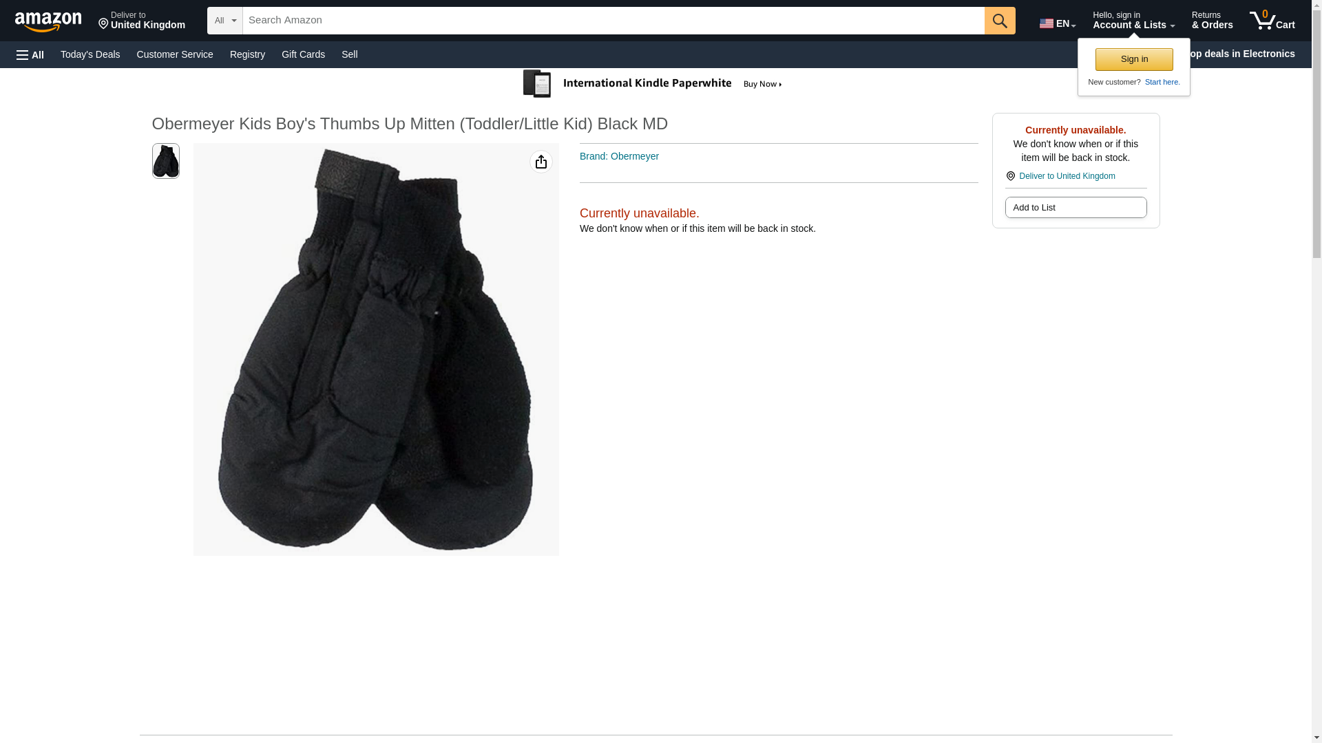 Obermeyer Kids Baby Boy's Thumbs Up Mitten (Toddler/Little Kid) Black LG