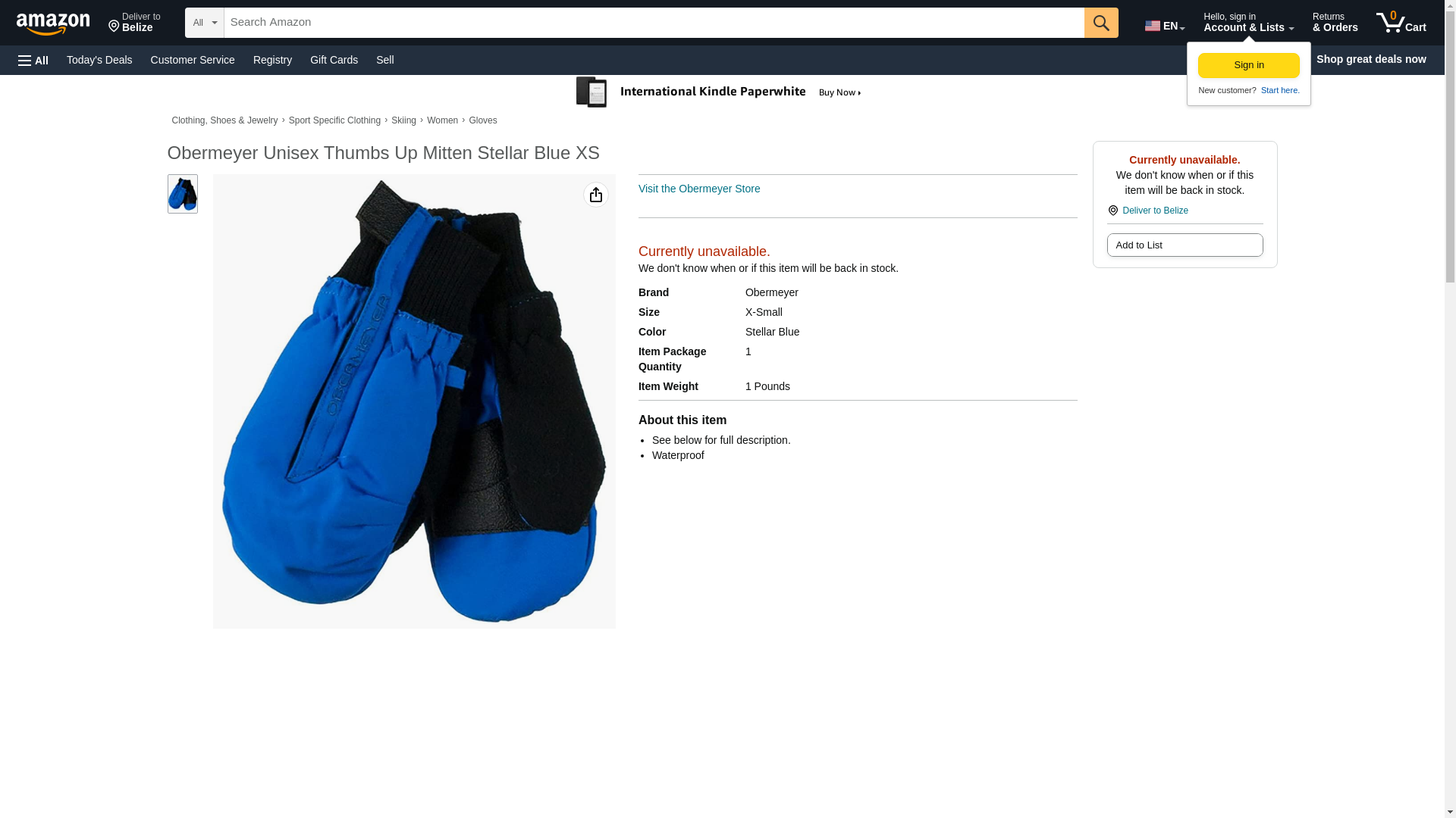 Obermeyer Unisex Thumbs Up Mitten Stellar Blue XS