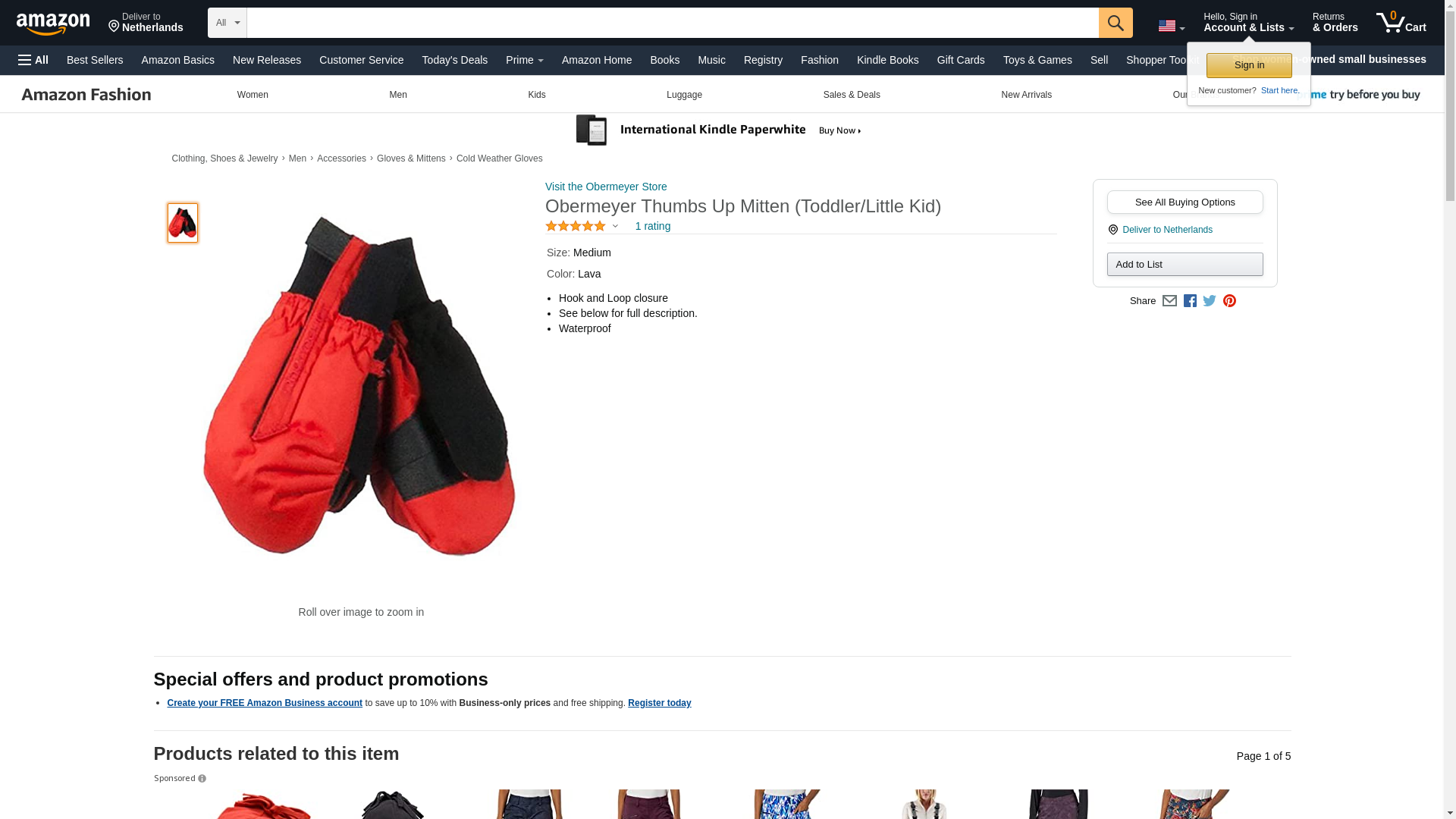 Obermeyer Unisex Thumbs Up Mitten Lava L