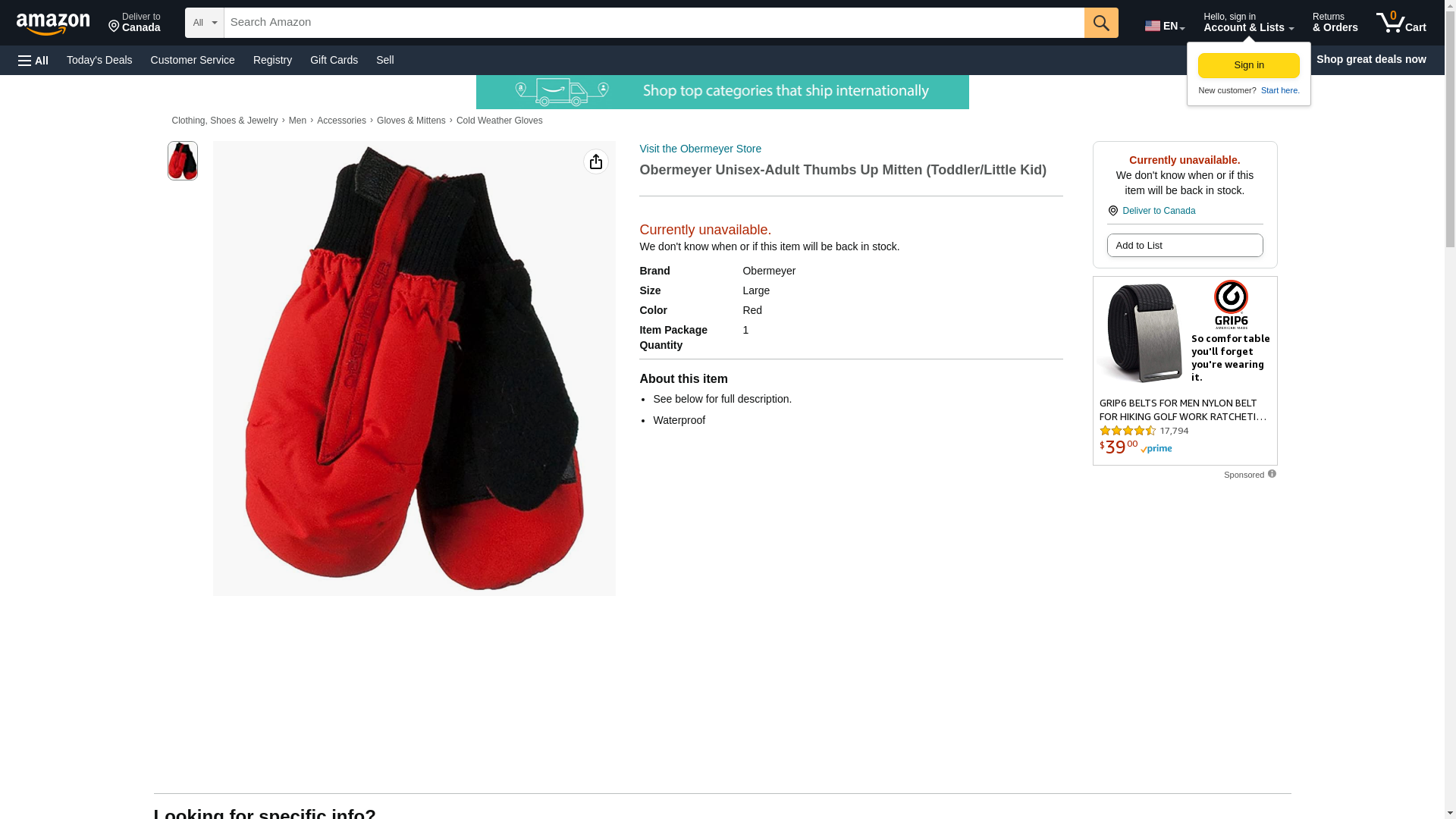 Obermeyer Unisex Thumbs Up Mitten Red M