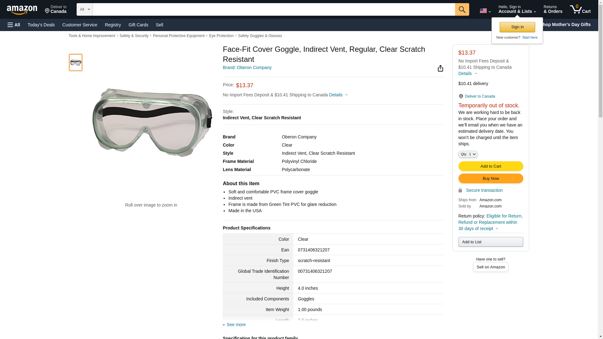 Face-Fit Cover Goggle Indirect Vent, Regular, Clear Chemical Resistant