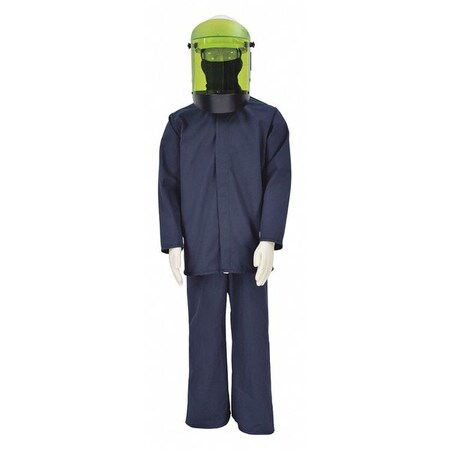 - Arc flash suit set comes equipped with a hardcap, faceshield, balaclava, coat, and bib overalls.