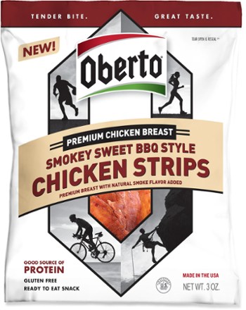 The Oberto Smokey Sweet BBQ Style Chicken Strips deliver a delicious, gluten-free source of protein, with cage-free raised chicken and no artificial ingredients.