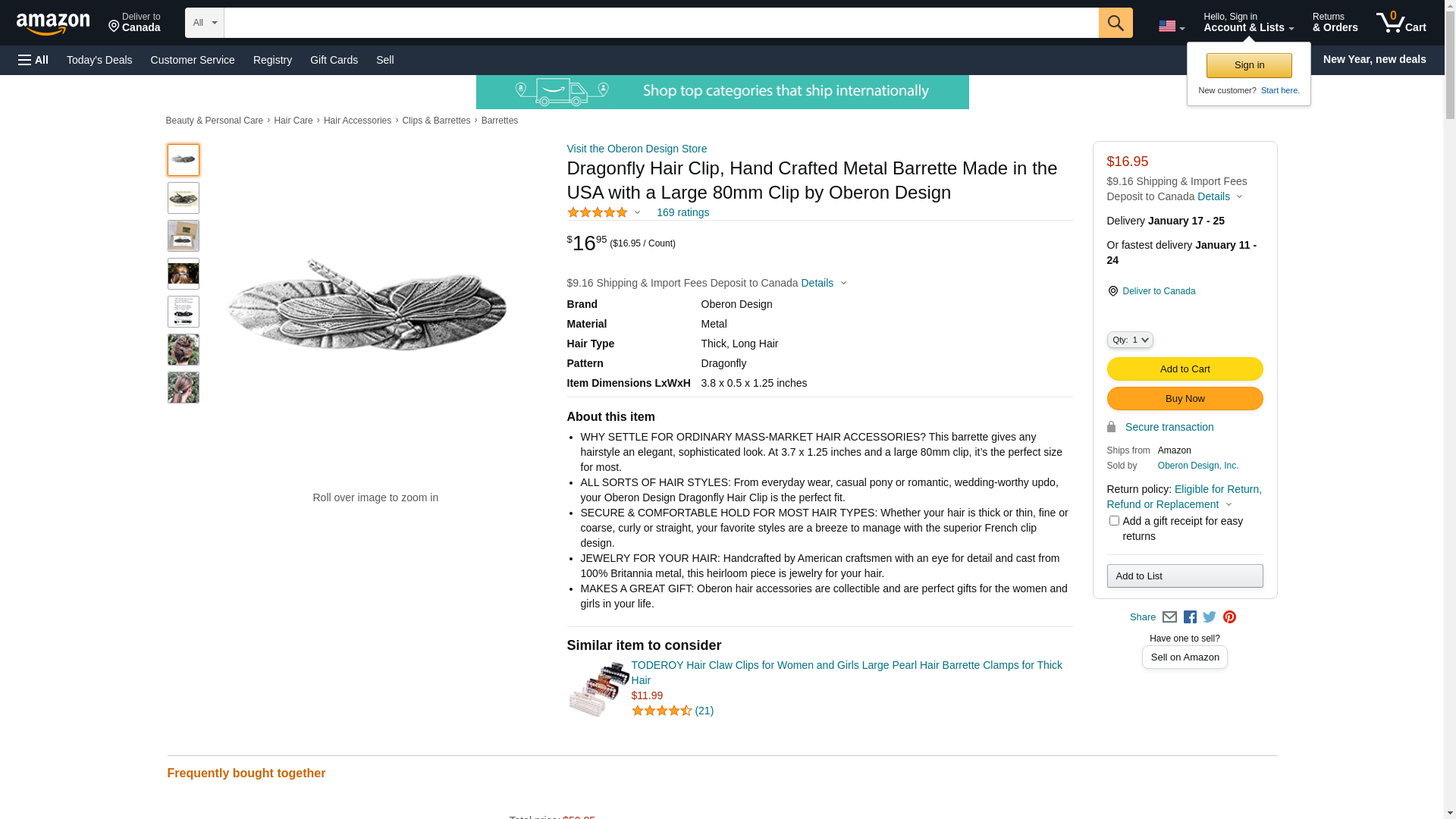 Dragonfly Hair Clip, Large Hand Crafted Metal Barrette Made in the USA with an 80mm Imported French Clip by Oberon Design: Maxedbuy.com