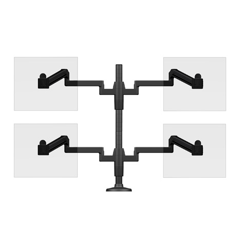 ProBoom Ultima Quad Monitor SMS Package. Features 24" Vertical Rise Modular Clamp/Bolt Through Mount with (4) Ultima Adjustable Monitor Arms & (4) 8" fixed horizontal arms; Up to 20lb. screen weight per arm; Integrated cable management system with wire guide clips; Black finish; Includes all necessary tools for adjustment and installation</p>