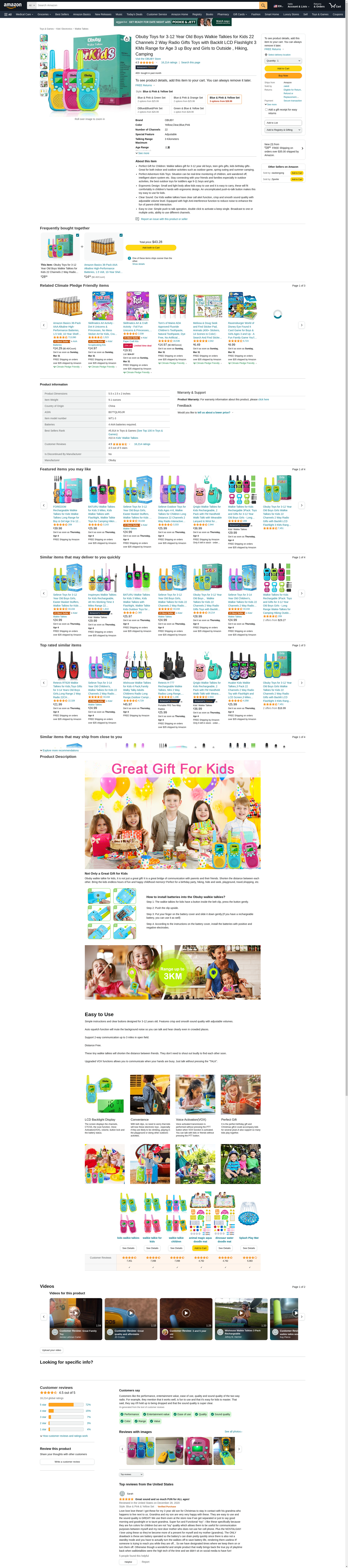 Obuby Walkie Talkies for Kids, 22 Channels 2 Way Radio Kid Gift Toy 3 KMs Long Range with Backlit LCD Flashlight Best Gifts Toys for Boys and Girls to Outside Adventure , Camping (Blue&Pink&Yellow): Maxedbuy.com