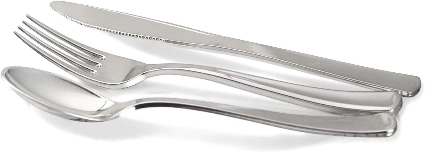 " OCCASIONS " 180 pcs Heavyweight Wedding Plastic Silverware (60 forks, 60 spoons, 60 knives) Silver Coated