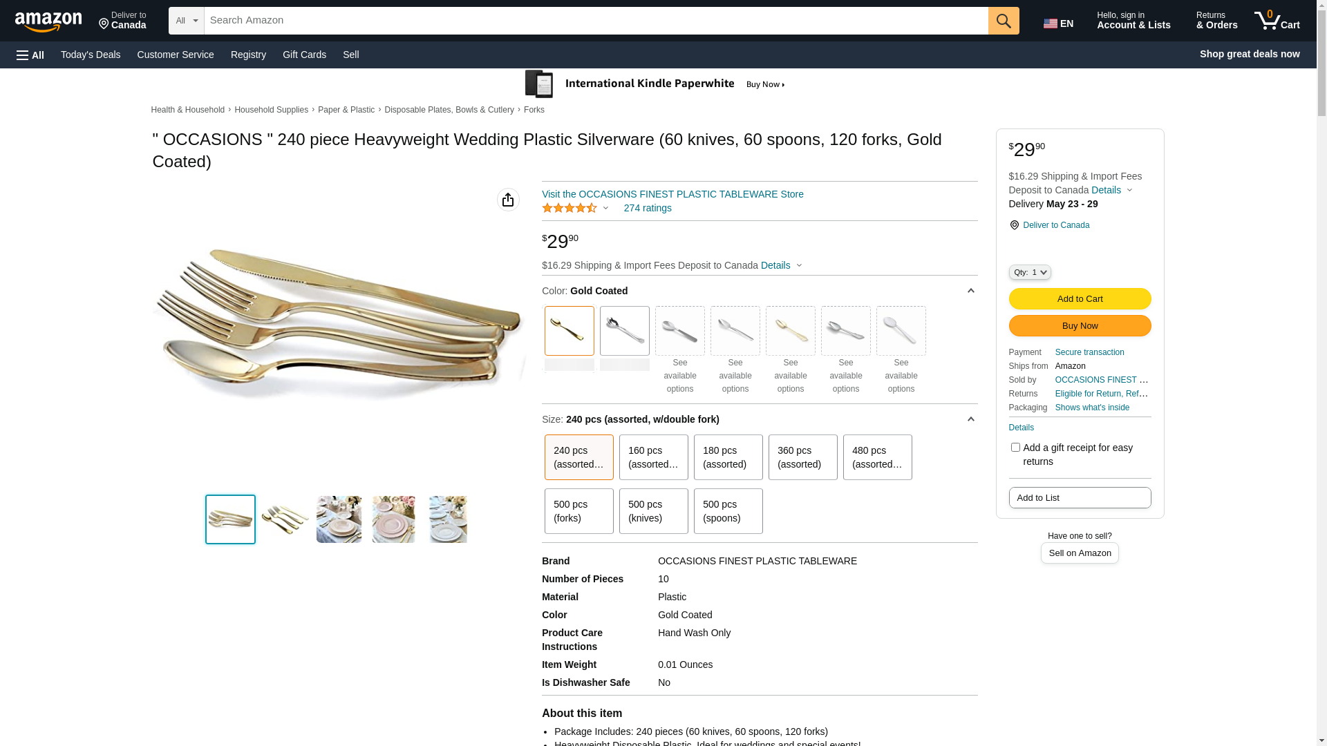 " OCCASIONS " 480 piece Heavyweight Wedding Plastic Silverware (120 knives, 120 spoons, 240 forks, Gold Coated)