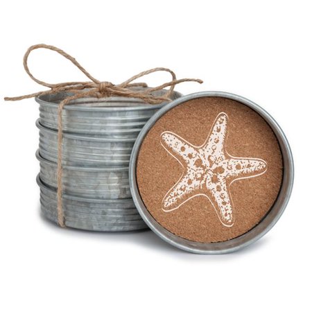 OCSA1183 <br /> <b>Features</b> <br /> <ul> <li>Coastal Home collection</li> <li>Set includes 4 coasters</li> <li>Absorbent cork bottom great drinks or to hold you favorite wine bottle</li> <li>Hand wipe clean</li> <li>Product Type: Coaster</li> <li>Color: Silver/White/Brown</li> <li>Pattern: Novelty</li> <li>Material: Metal</li> </ul> <br /> <b>Dimensions</b> <br /> <ul> <li>Overall Product Weight: 1 lbs</li> <li>Overall Height - Top to Bottom: 1"</li> <li>Overall Width - Side to Side: 4"</li> <li>Overall Depth - Front to Back: 4"</li> </ul>