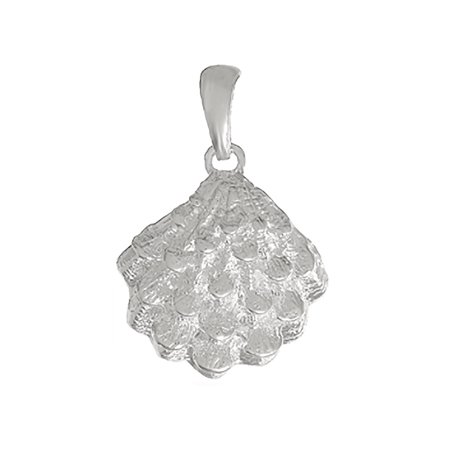 Million Charms Fine Jewelry: 925 Sterling Silver Necklace or Bracelet Charm Pendant, Nautical Textured Oyster Shell / 2D 2.4 grams
