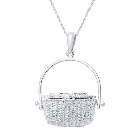 Million Charms Fine Jewelry: 925 Sterling Silver Necklace or Bracelet Charm Pendant with Chain, Nautical 3D Nantucket Basket (1 Of 4)/Lid To Hold Scrimshaw 8.7 grams