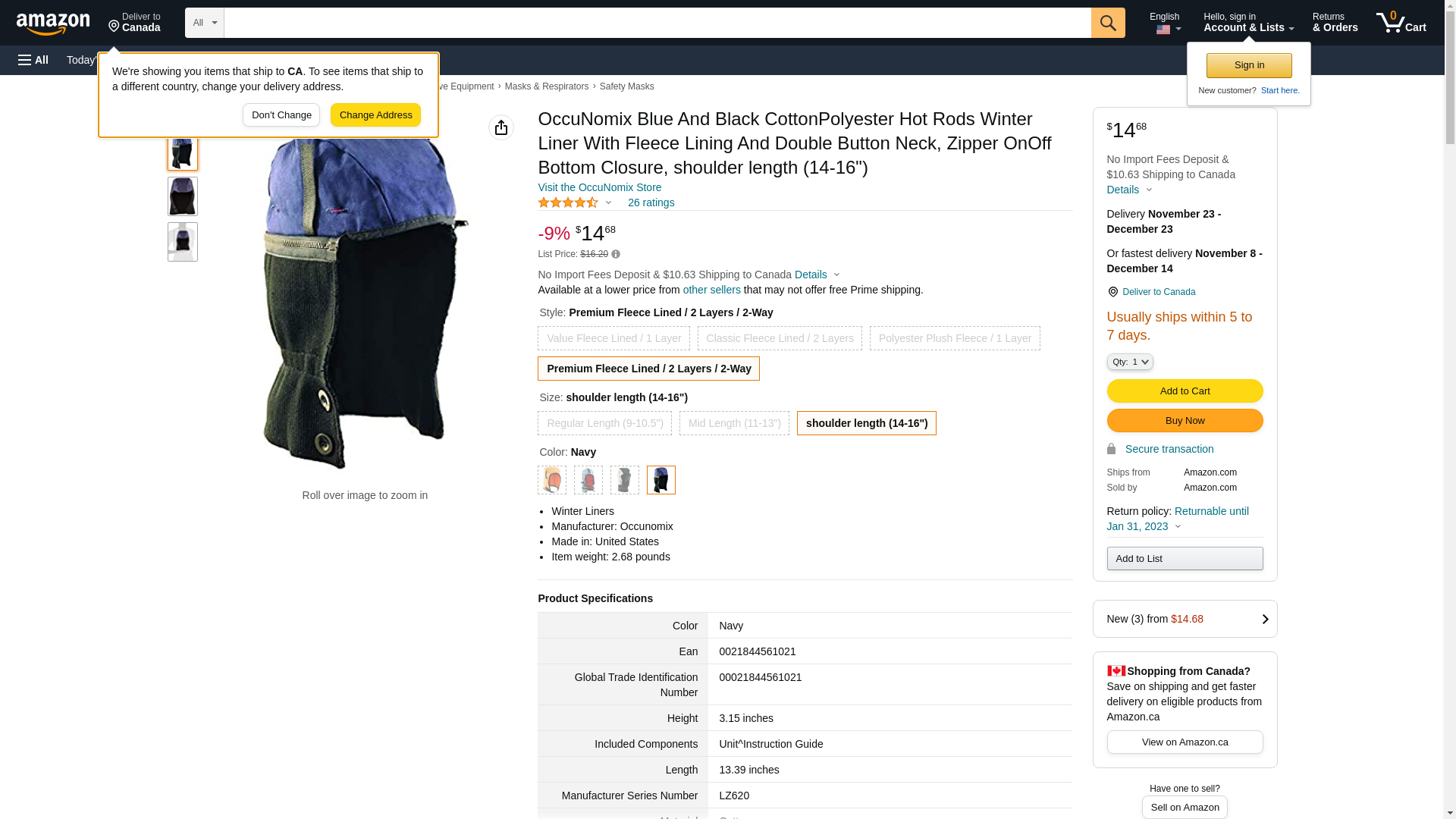 OccuNomix mens Fleece Lined / 2 Layers 2-way Premium Shoulder Length Two Way Winter Liner, Navy, shoulder length 14-16 US