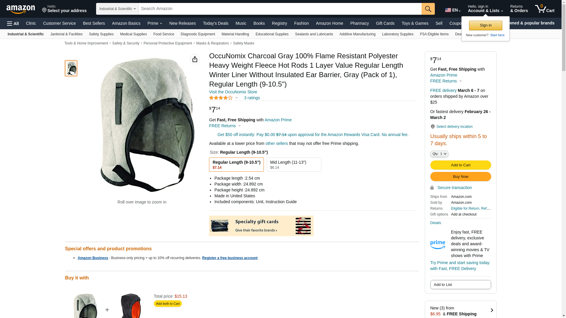 OccuNomix Charcoal Gray 100% Flame Resistant Polyester Heavy Weight Fleece Hot Rods 1 Layer Value Regular Length Winter Liner Without Insulated Ear Barrier, Gray (Pack of 1), Regular Length (9-10.5")