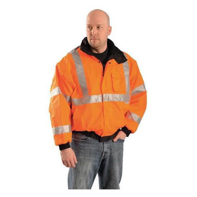 OccuNomix LUX-TJBJ-OS Premium 4-in-1 Bomber Jacket, Class 3, 100% ANSI Polyester, Waterproof, Small, Orange